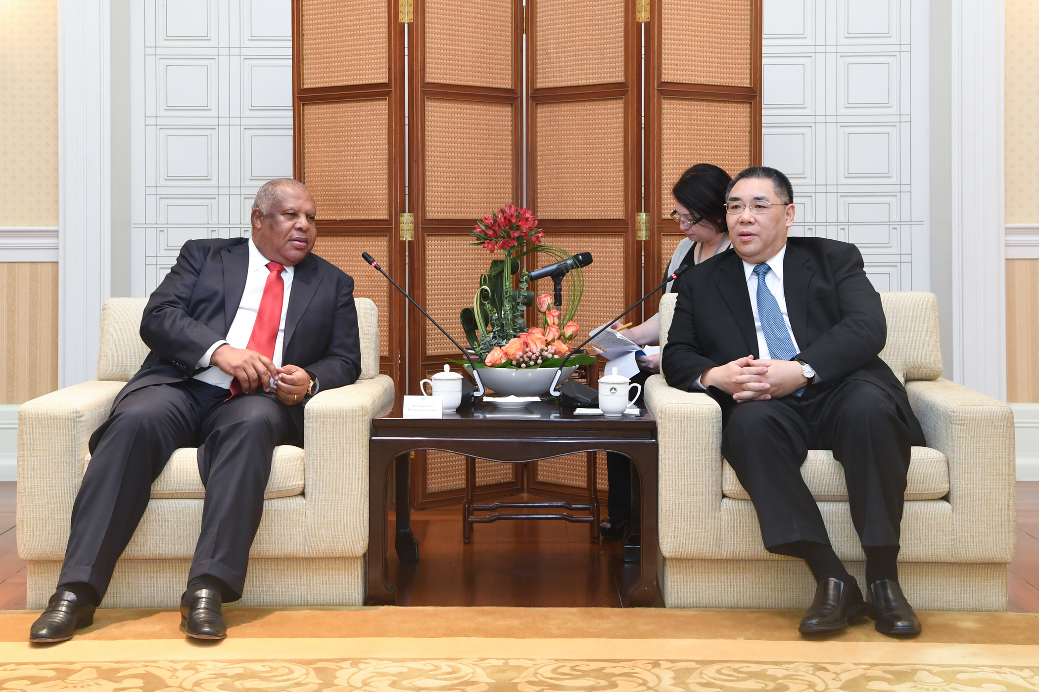 Chui Sai On começou por dar as boas-vindas a Francisco Higino Carneiro e respectiva comitiva, que se encontra de visita a Macau e felicitou pelo sucesso desta visita. Aproveitou para recordar que a Região Administrativa Especial de Macau, desde o seu estabelecimento em Dezembro de 1999, tem concretizado, com o apoio do Governo Central, o princípio «um país, dois sistemas», «Macau governado pelas suas gentes» e «alto grau de autonomia», como também tem registado um bom desenvolvimento económico e a qualidade de vida da população tem melhorado.