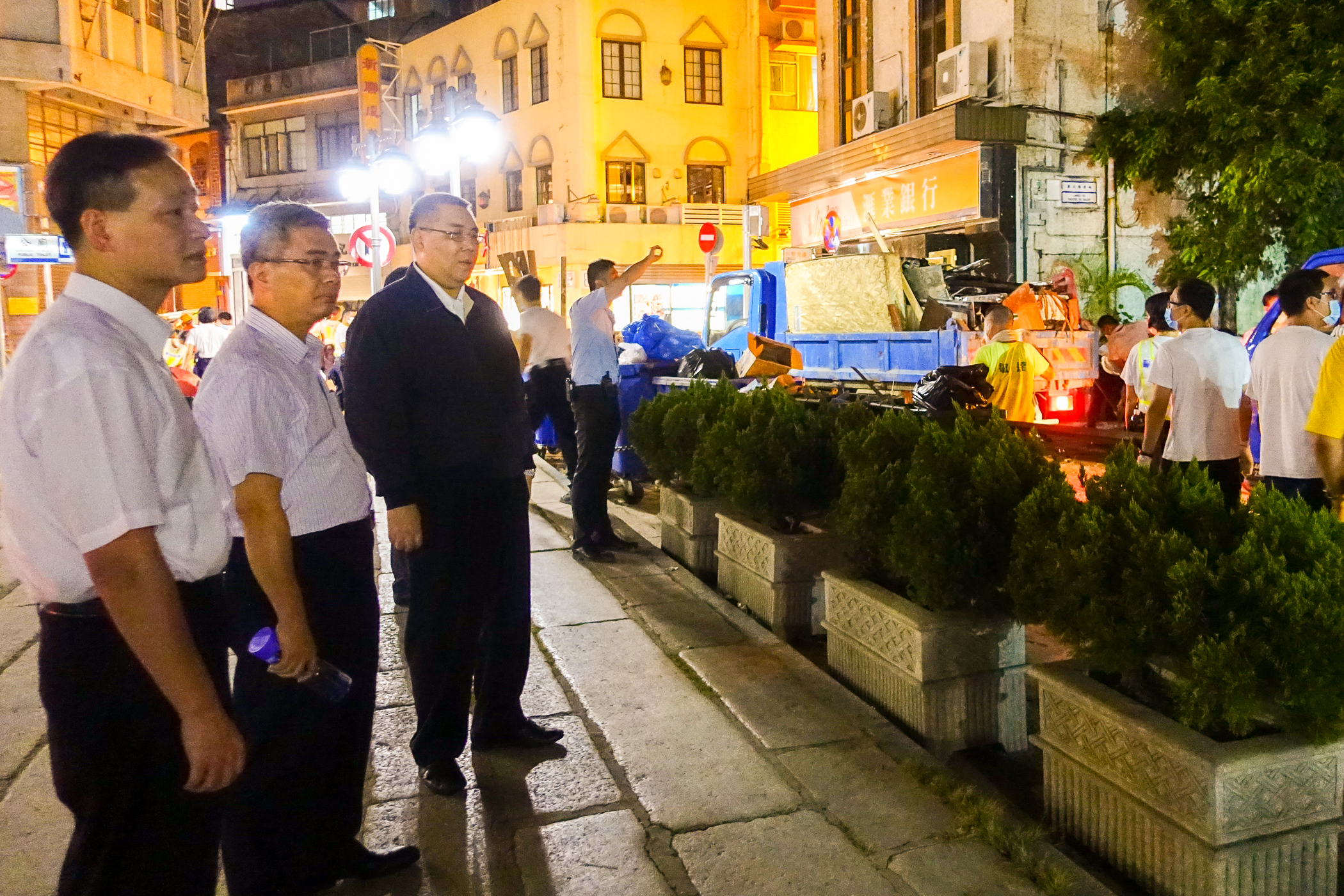 Chui Sai On, deslocou-se à zona da Rua 5 de Outubro, Rua da Ponta e Horta, Fai Chi Kei, Bairro San Kiu e outros Bairros das Ilhas onde fez a avaliação do trabalho de rescaldo e onde agradeceu a participação dos agentes das Forças de Segurança, dos voluntários e dos residentes.