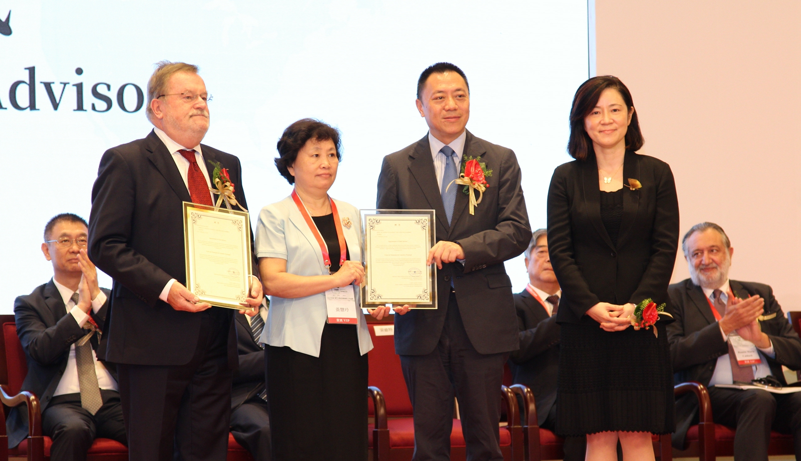 Também estiveram presentes 15 convidados, incluindo o Dr. Wang Guoqiang, director da Administração Estatal de Medicina Tradicional Chinesa, o Dr. Huang Liuquan, director adjunto do Gabinete para os Assuntos de Hong Kong e Macau do Conselho de Estado, o Dr. Yao Jian, director adjunto do Gabinete de Ligação do Governo Central da RPC na RAEM, o Dr. Wang Dong, comissário em exercício do Ministério dos Negócios Estrangeiros da RPC na RAEM, o Dr. Mouzinho Saíde, director do Hospital Geral de Maputo e ex-vice-ministro da Saúde de Moçambique, o Dr. Yang Xingping, vice-governador do Governo Popular da Província de Sichuan, o Dr. Leong Vai Tac, secretário para a Economia e Finanças do Governo da Região Administrativa Especial de Macau, o Dr. Wang Lifeng, director do Departamento de Registo de Medicamentos e Comésticos da Administração de Alimentos e Medicamentos da China, o Dr. Shao Mingli, ex-director da Administração de Alimentos e Medicamentos da China e representante da Comissão Consultiva de Especialistas do Parque Industrial, o Dr. Gerhard Franz, ex-presidente do Grupo de Trabalho da Medicina Tradicional Chinesa (MTC) da Farmacopeia Europeia e presidente do Grupo de Trabalho da Medicina Tradicional Chinesa (MTC) da Farmacopeia Alemã, o Dr. Ramòn Maria Calduch, vice-presidente da Fundação Europeia de Medicina Tradicional Chinesa, o Dr. Zhu Qingqiao, membro do Comité Permanente do Partido Comunista da China em Zhuhai e vice-prefeito de Zhuhai, a Dra. Lu Hong, assessora do Gabinete do Secretário para a Economia e Finanças do Governo da RAEM e Presidente do Conselho de Administração da Guangdong-Macau Traditional Chinese Medicine Technology Industrial Park Development Co., Ltd.