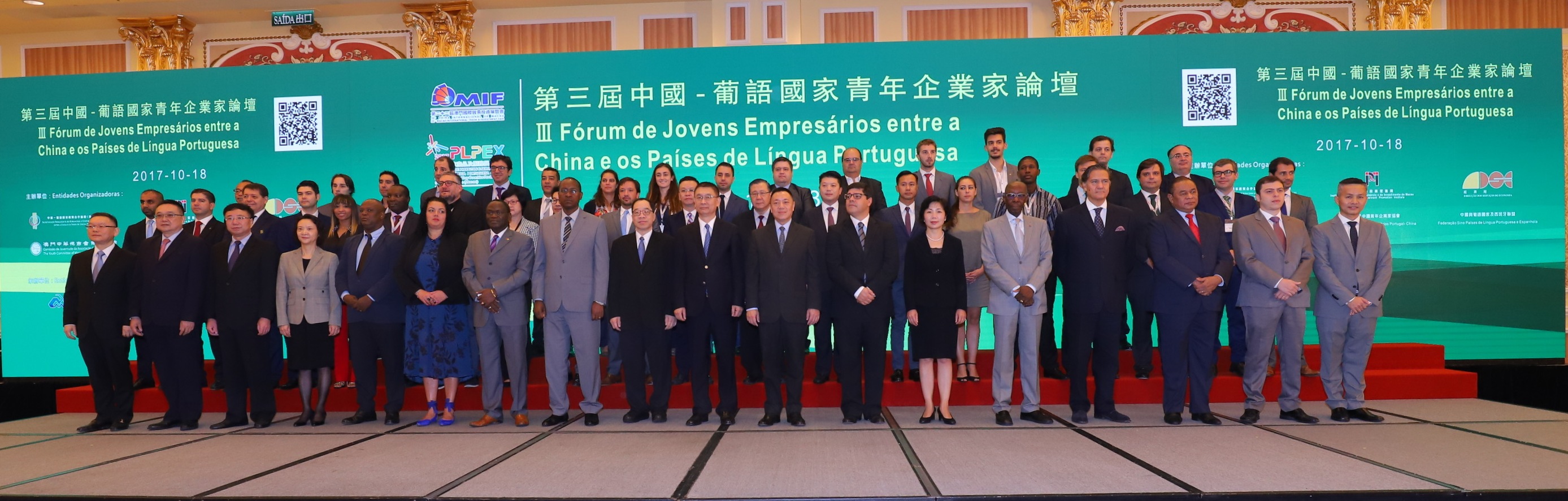 Realiza-se, na parte da manhã do dia 18 de Outubro, no Salão Florence do Venetian Macao-Resort-Hotel, o “III Fórum de Jovens Empresários entre a China e os Países de Língua Portuguesa” com a organização conjunta do Secretariado Permanente do Fórum para a Cooperação Económica e Comercial entre a China e os Países de Língua Portuguesa, do Instituto de Promoção do Comércio e do Investimento de Macau, da Direcção dos Serviços de Economia, da Comissão de Juventude da Associação Comercial de Macau e da Associação de Jovens Empresários Portugual-China, bem como da Federação Sino Países de Língua Portuguesa e Espanhola. Na mesma ocasião, realiza-se ainda a cerimónia de descerramento da placa do “Centro de Intercâmbio de Inovação e Empreendedorismo para Jovens da China e dos Países de Língua Portuguesa”.