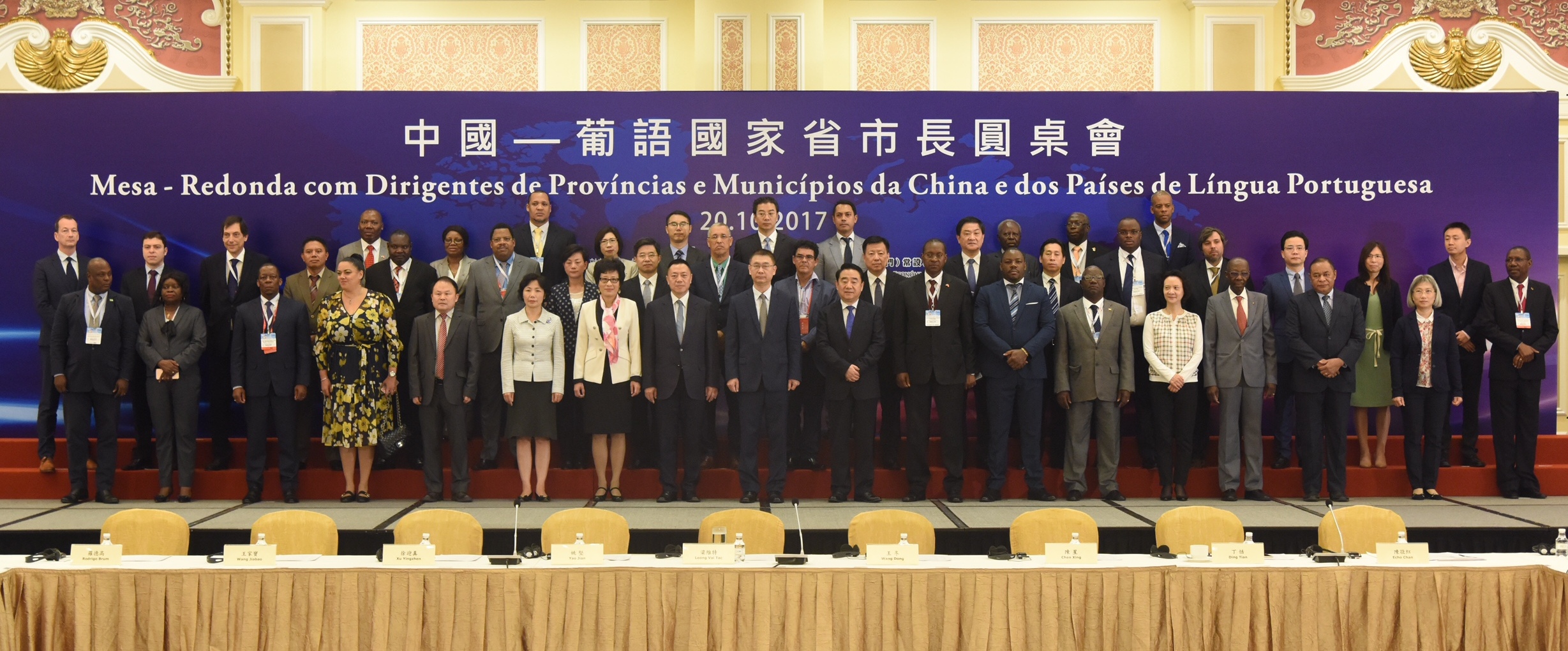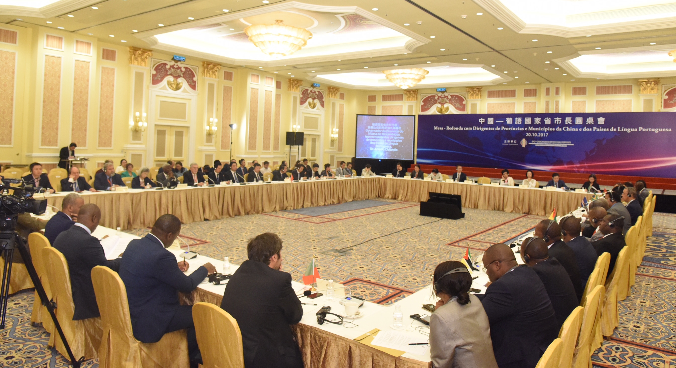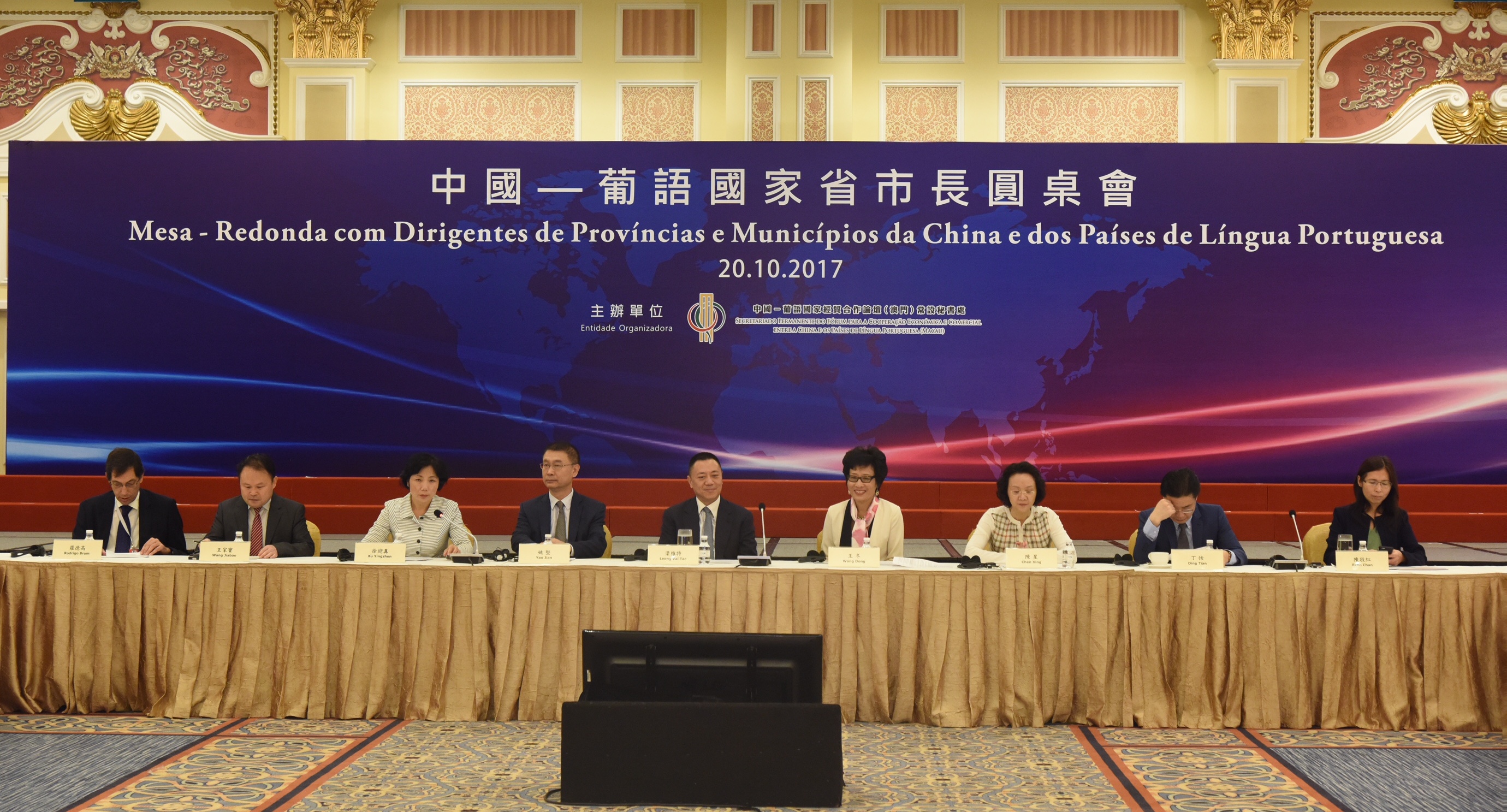 Realiza-se na manhã do dia 20 de Outubro, a Mesa-Redonda com dirigentes de Províncias e Municípios da China e dos Países de Língua Portuguesa, evento organizado pelo Fórum para a Cooperação Económica e Comercial entre a China e os Países de Língua Portuguesa (Macau), na Sala Florence do Centro de Convenções e Exposições do Venetian Macao. A Mesa-Redonda contou com a presença do Secretário para a Economia e Finanças da RAEM, Dr. Leong Vai Tac, do Sub-Director do Gabinete de Ligação do Governo Popular Central na RAEM, Dr. Yao Jian, do Vice-Governador da Província de Jiangsu, Dr. Chen Zhenning, da Comissária em Exercício do Gabinete do Comissariado do Ministério dos Negócios Estrangeiros da República Popular da China na RAEM, Dra. Wang Dong, do Secretário de Estado do Plano e Integração Regional da Guiné-Bissau, Dr. José Biai, do Governador da Província do Niassa de Moçambique, Dr. Arlindo Chilundo, do Presidente da Câmara Distrital de Cantagalo de São Tomé e Príncipe, Dr. Paulo Jorge de Carvalho, da Secretária-Geral do Secretariado Permanente do Fórum de Macau, Dra. Xu Yingzhen, da Directora-Geral da Delegação Comercial do Departamento dos Assuntos Económico do Gabinete de Ligação do Governo Central da República Popular da China na RAEM, Dra. Chen Xing, do Adjunto do Director-Geral Adjunto do Departamento dos Assuntos Económicos do Gabinete de Ligação do Governo Central da República Popular da China na RAEM, Dr. Wang Jiabao, dos Corpos Diplomáticos dos Países de Língua Portuguesa, em Pequim e dos Dirigentes Municipais e Providenciais do Interior da China e dos Países de Língua Portuguesa. Durante a Mesa-Redonda, a Secretária-Geral do Secretariado Permanente do Fórum de Macau, Dra. Xu Yingzhen, o Vice-Governador da Província de Jiangsu, Dr. Chen Zhenning e o Governador da Província do Niassa de Moçambique, Dr. Arlindo Chilundo proferiram respectivamente discursos.