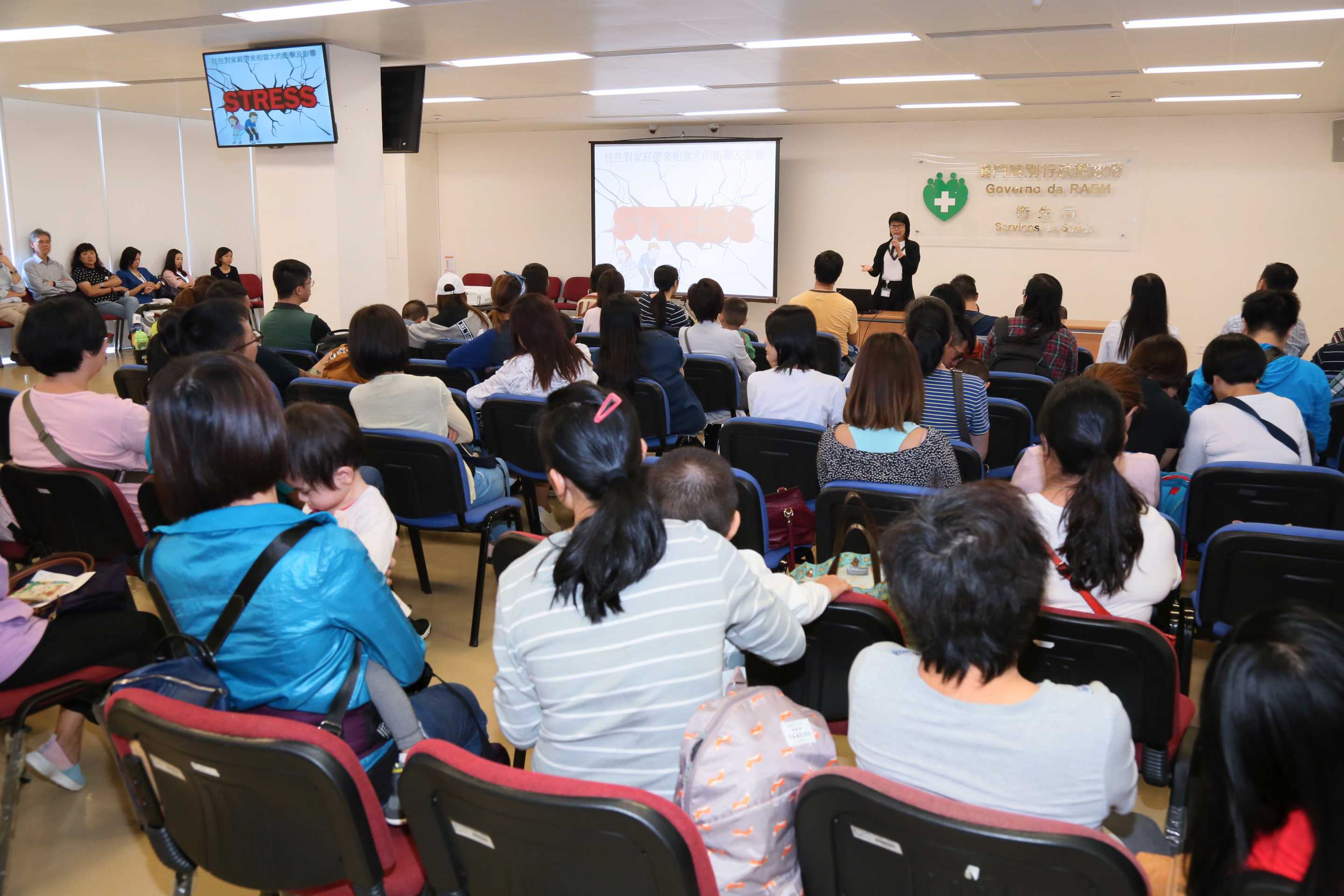 A terapeuta da fala, Ieong Si Wai, a terapeuta ocupacional, Lo Seong Chin, do Centro da Reabilitação Pediátrica dos Serviços de Saúde apresentou os serviços de treino de reabilitação do Centro destinados aos pais, nomeadamente quais os conteúdos de terapia da fala mais comuns, como é que se aproveitam os brinquedos domiciliários mais comuns para induzir o desenvolvimento da fala das crianças, de forma a impulsionar a capacidade social, bem como a realização de treino muscular oral para melhorar a precisão e clareza da pronunciação das crianças, entre outros. Por outro lado, Lo Seong Chin apresentou os conteúdos de treino de terapia ocupacional para que os pais compreendam que a terapia ocupacional não é uma medicina ocupacional para cura das doenças profissionais, mas significa que os terapeutas aproveitam o uso de ‘actividades com objectivos’ para curar ou ajudar os pacientes com obstáculos físicos, psicológicos, de desenvolvimento ou de função social, de forma a lhes permitir a obtenção de maior independência da vida. Além disso, falou sobre as maneiras para ajudar ao melhoramento de funções de mãos de crianças, a promoção dos meios para desenvolvimento de movimento de pequeno músculo, bem como os meios de tratamento de alergia sentimental que é muito comum em crianças com autismo.