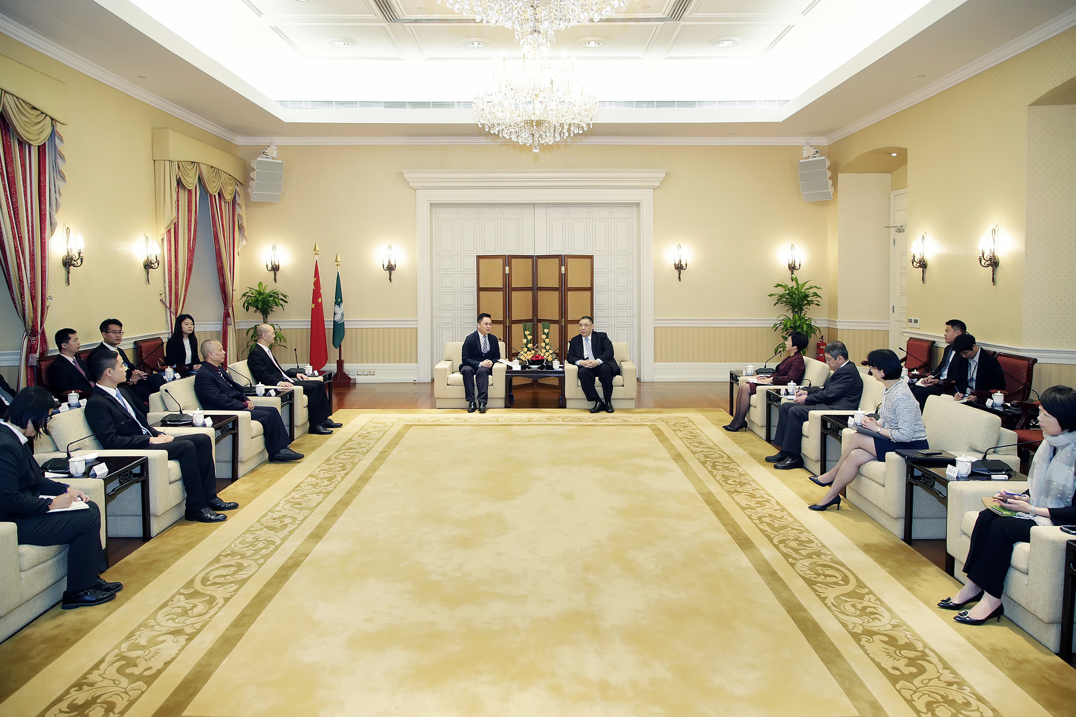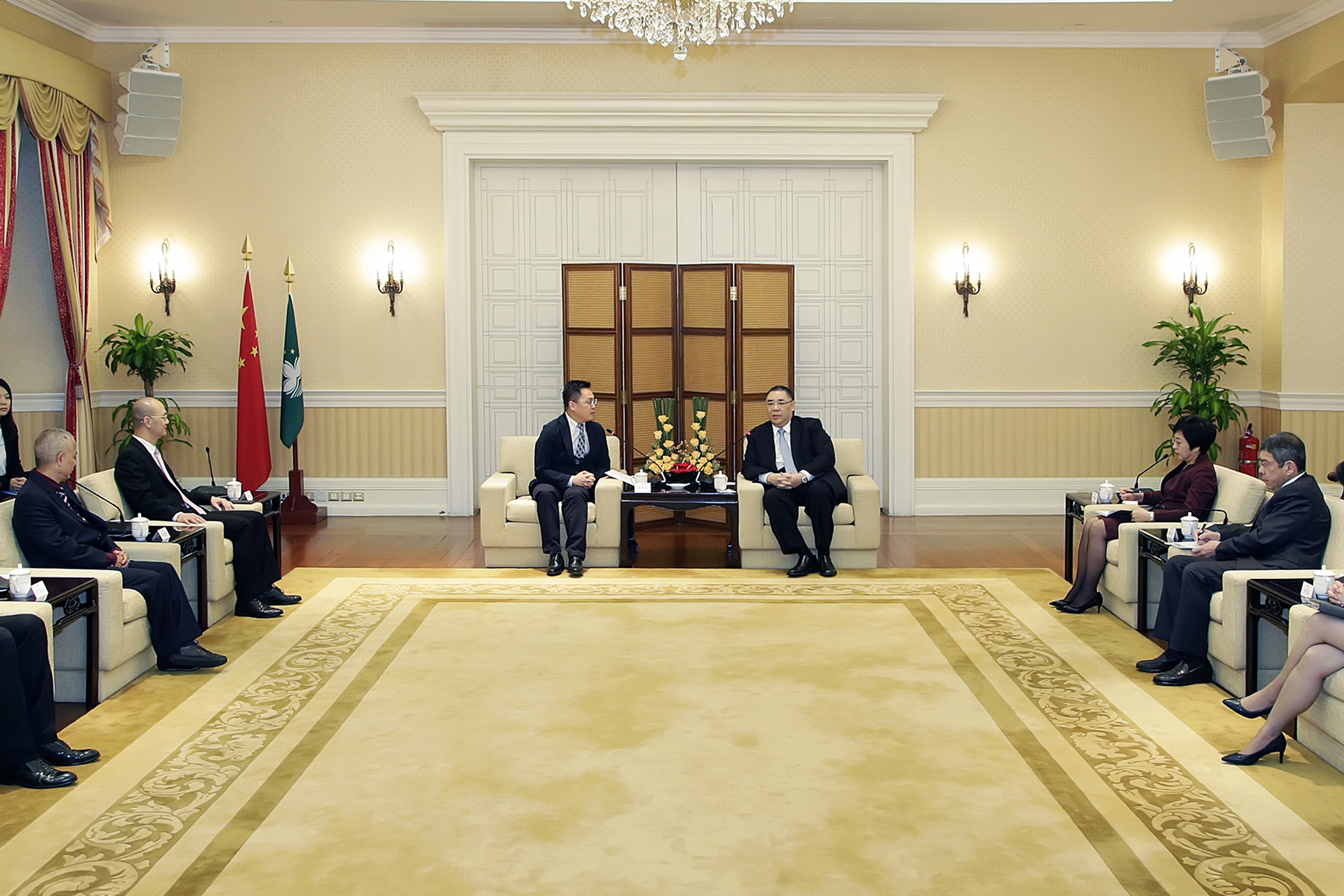 O encontro contou ainda com a presença da secretária para a Administração e Justiça, Sónia Chan, do secretário para os Transportes e Obras Públicas, Raimundo do Rosário, e da chefe do Gabinete do Chefe do Executivo, O Lam. Da parte da Aliança, participaram também na reunião os vice-presidentes, Lam Ieong Ieong, Ao Ieong Kuong Kao, Hoi Long Tong, assim como o vice-presidente do conselho fiscal, Yuen Hon Kuan, e membro da direcção, Fok Hoi Ian.