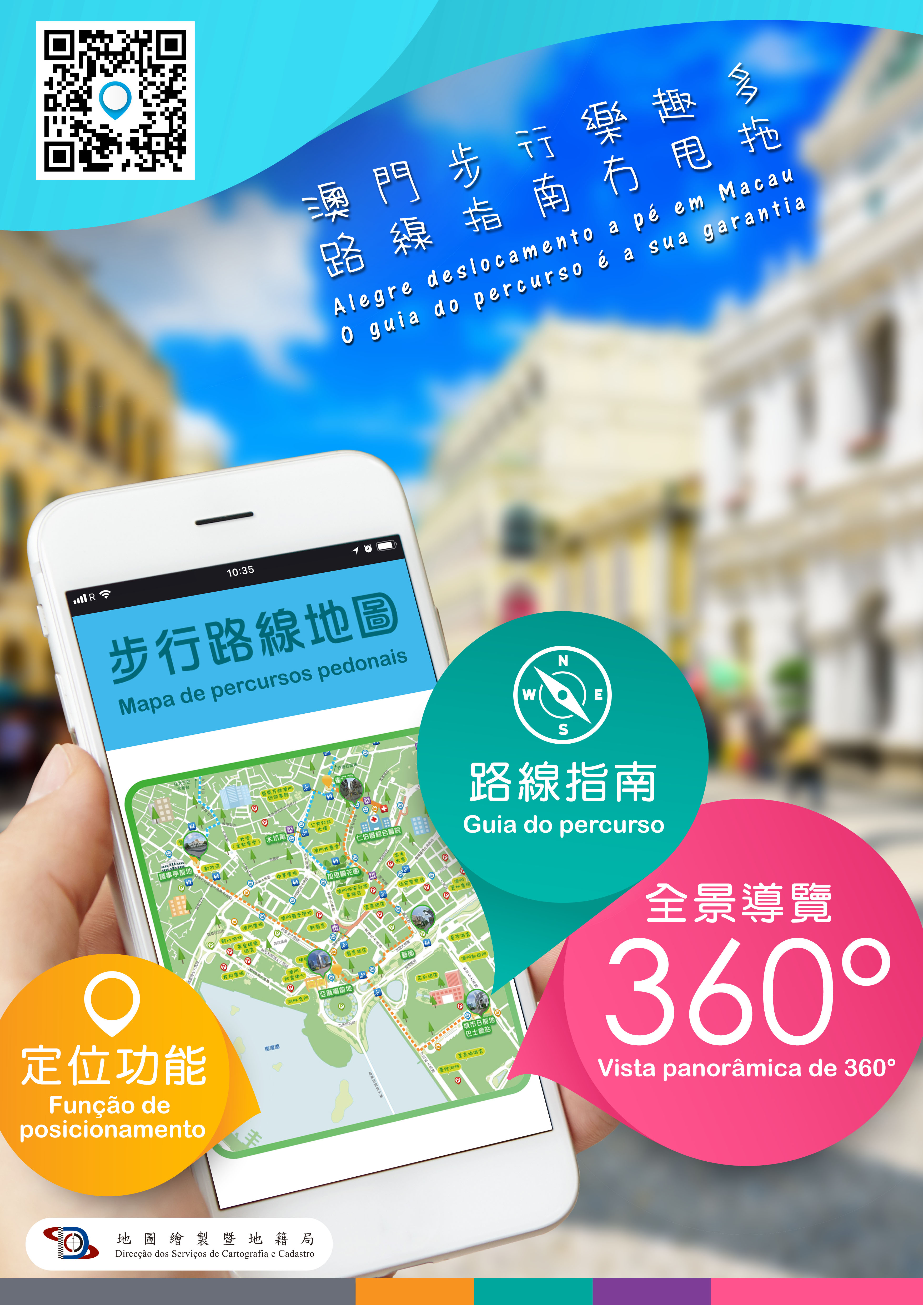 Em articulação com o objectivo da «criação de um ambiente agradável de circulação de pessoas e veículos» do Governo da Região Administrativa Especial de Macau, a Direcção dos Serviços de Cartografia e Cadastro (adiante designado por DSCC), em colaboração com a Direcção dos Serviços para os Assuntos de Tráfego, a Direcção dos Serviços de Solos, Obras Públicas e Transportes, o Gabinete para a Infra-estruturas de Transportes, a Direcção dos Serviços de Turismo, o Instituto para os Assuntos Cívicos e Municipais e o Instituto Cultural, lança o “Mapa de percursos pedonais” e a página electrónica temática. Será lançada inicialmente a versão em chinês tradicional, e as versões portuguesa e inglesa serão lançadas posteriormente; estes mapas permitem que os cidadãos e turistas possam ter um conhecimento aprofundado sobre os percursos pedonais visando incentivar o hábito da prioridade do deslocamento a pé.
