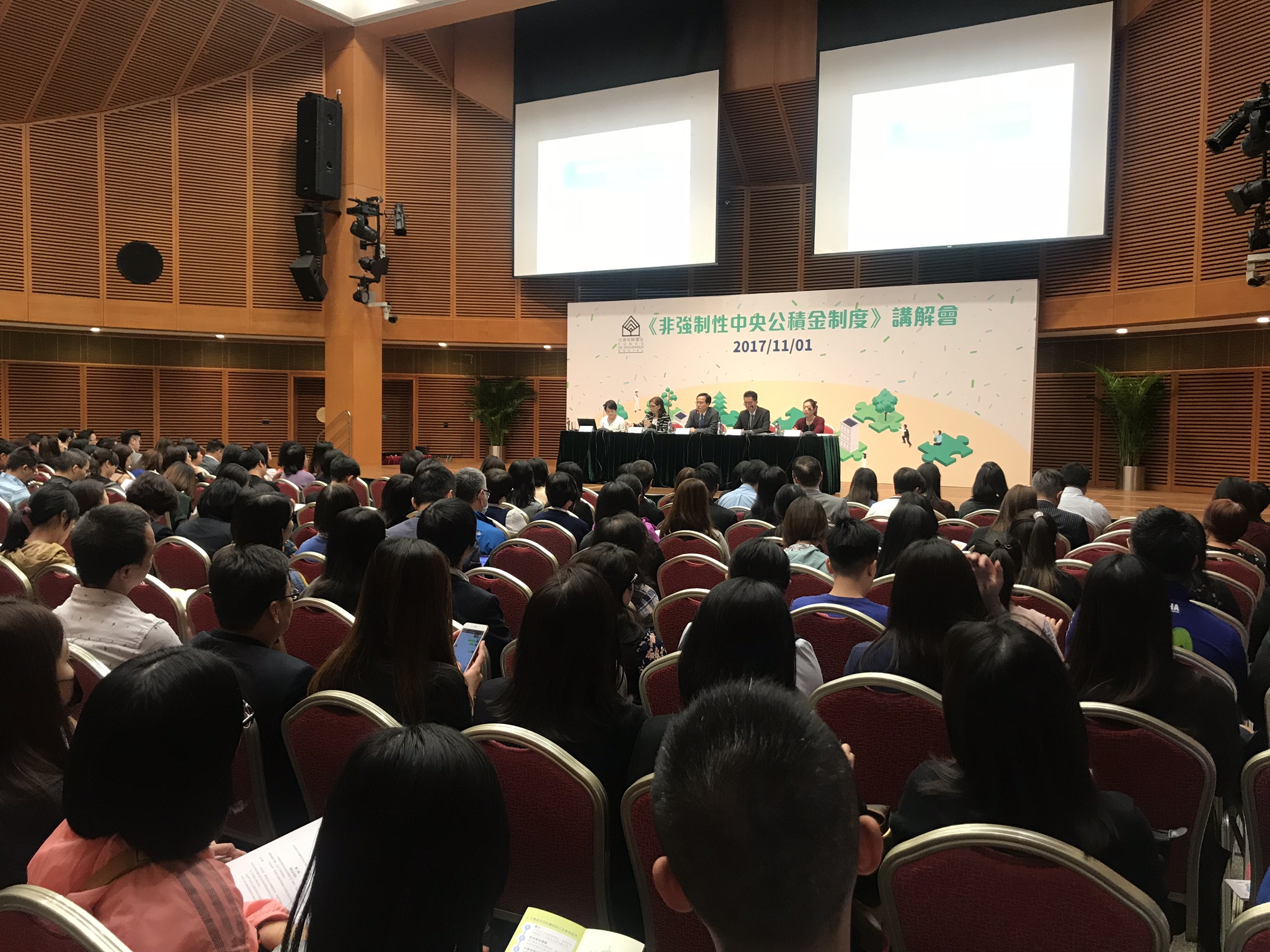 O “Regime de Previdência Central não Obrigatório” vai entrar em vigor no dia 1 de Janeiro do próximo ano. No intuito de permitir à sociedade ter um conhecimento mais profundo sobre o regime, o Fundo de Segurança Social (FSS) realizou várias sessões de esclarecimento para introduzir aos trabalhadores de diversos sectores de actividades o regime de previdência central não obrigatório, tendo sido organizados ainda duas sessões públicas destinadas aos empregadores. Sucessivamente, terão lugar duas sessões públicas destinadas aos trabalhadores nos dias 11 e 26 de Novembro, é bem-vinda a participação dos interessados.