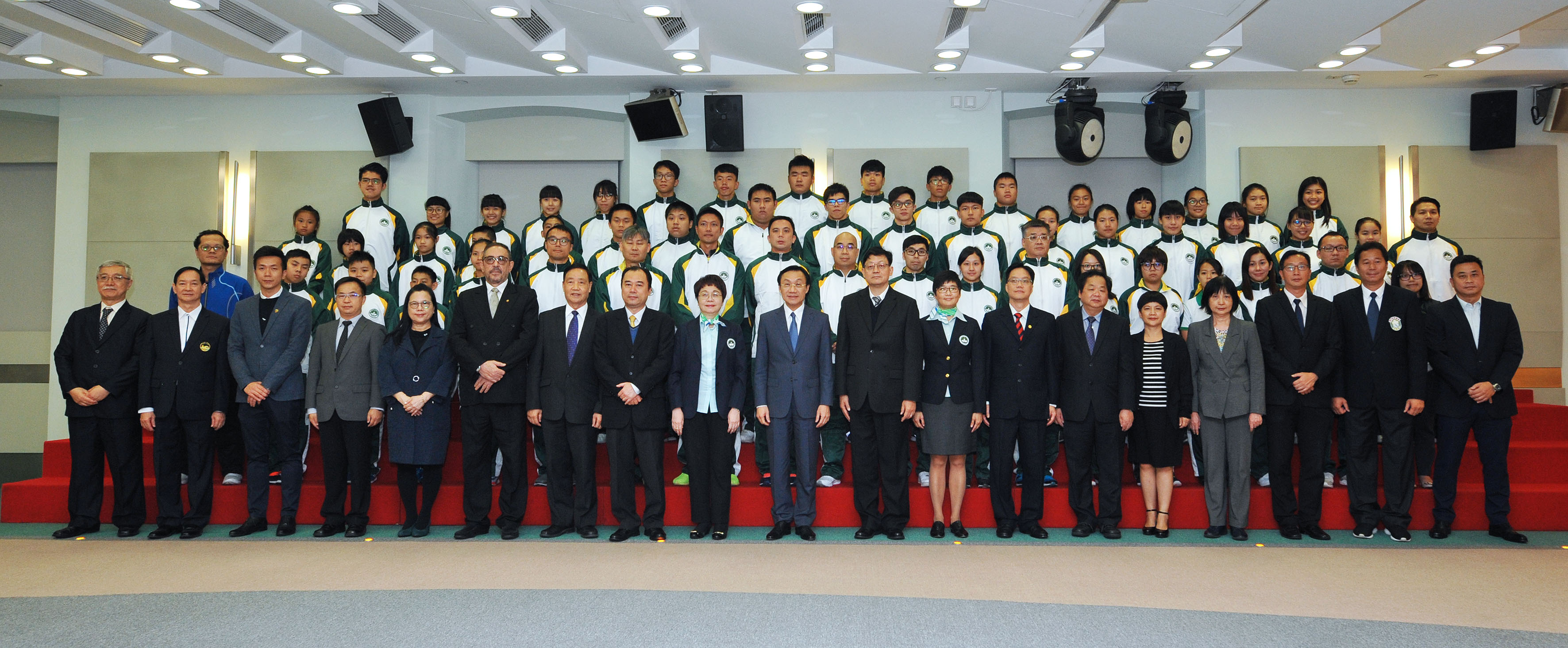 A Cerimónia de Despedida teve lugar no dia 20 de Novembro na Sede do Governo da RAEM e o Secretário para os Assuntos Sociais e Cultura, Alexis, Tam Chon Weng entregou a Bandeira da RAEM à Delegação Escolar de Macau. Na ocasião, o Secretário para os Assuntos Sociais e Cultura, Alexis, Tam Chon Weng disse no seu discurso, que o Governo da RAEM atribuiu sempre a importância ao desenvolvimento diversificado dos estudantes e promoveu activamente a participação dos estudantes nas práticas desportivas, prestando o apoio e assistência, ao desenvolvimento de desporto escolar. Incentivou ainda, os atletas a trocarem mais experiências e estabelecerem intercâmbios com os atletas provenientes de regiões da área do Pacífico, com vista a obter uma oportunidade de aprendizagem e ampliar o seu horizonte. A Directora dos Serviços de Educação e Juventude e presidente honorária da delegação, Leong Lai, encorajou os atletas a valorizarem a oportunidade de participação para, assim, obterem experiências de competição, melhorarem o seu nível desportivo, bem como aproveitarem esta oportunidade para fortalecer o intercâmbio com os estudantes de outros países e regiões, de modo a demonstrar a boa imagem dos estudantes de Macau e a promover a amizade e o espírito desportivo.