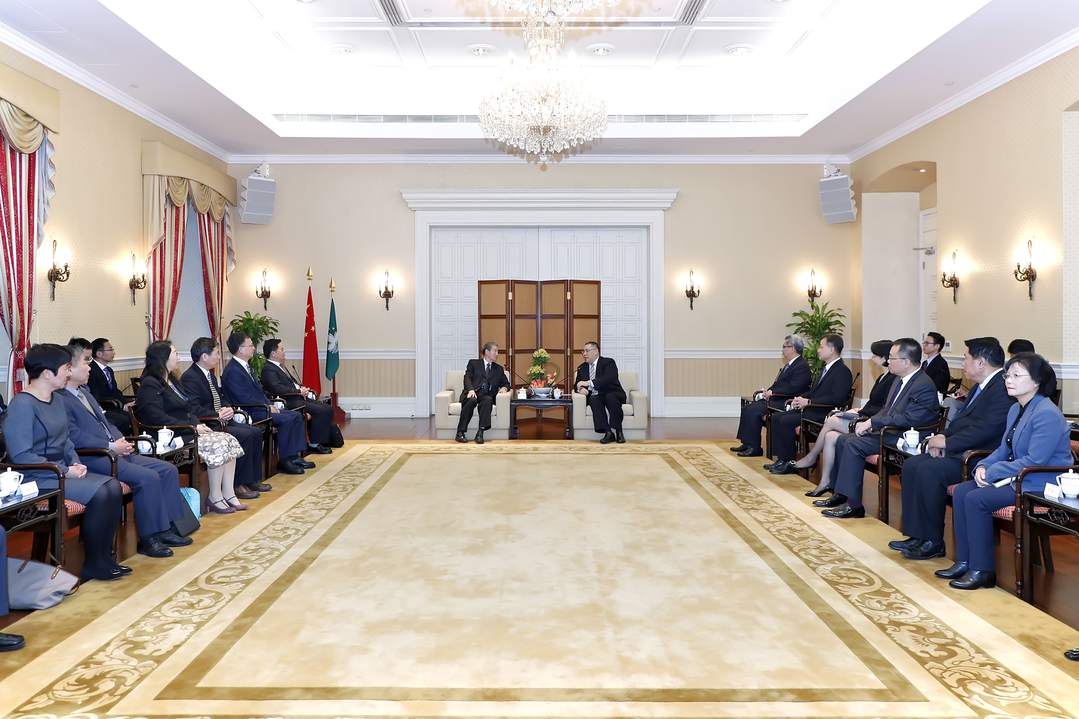O encontro contou ainda com a presença da chefe do Gabinete do Chefe do Executivo, O Lam, do director do Gabinete de Comunicação Social, Victor Chan, do coordenador do Gabinete de Estudo das Políticas, Lao Pun Lap, e da assessora do Gabinete do Chefe do Executivo, Lei Ngan Leng.