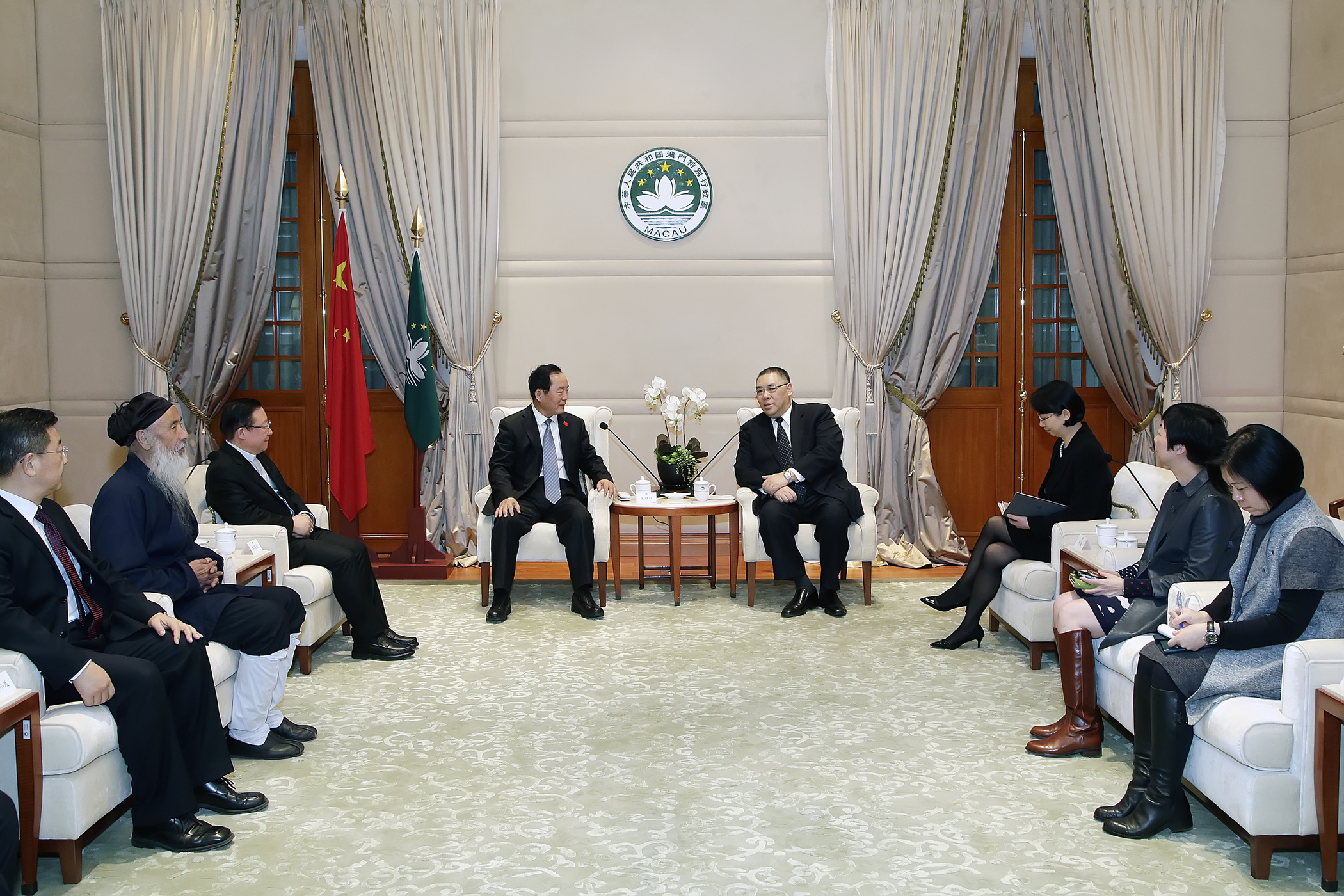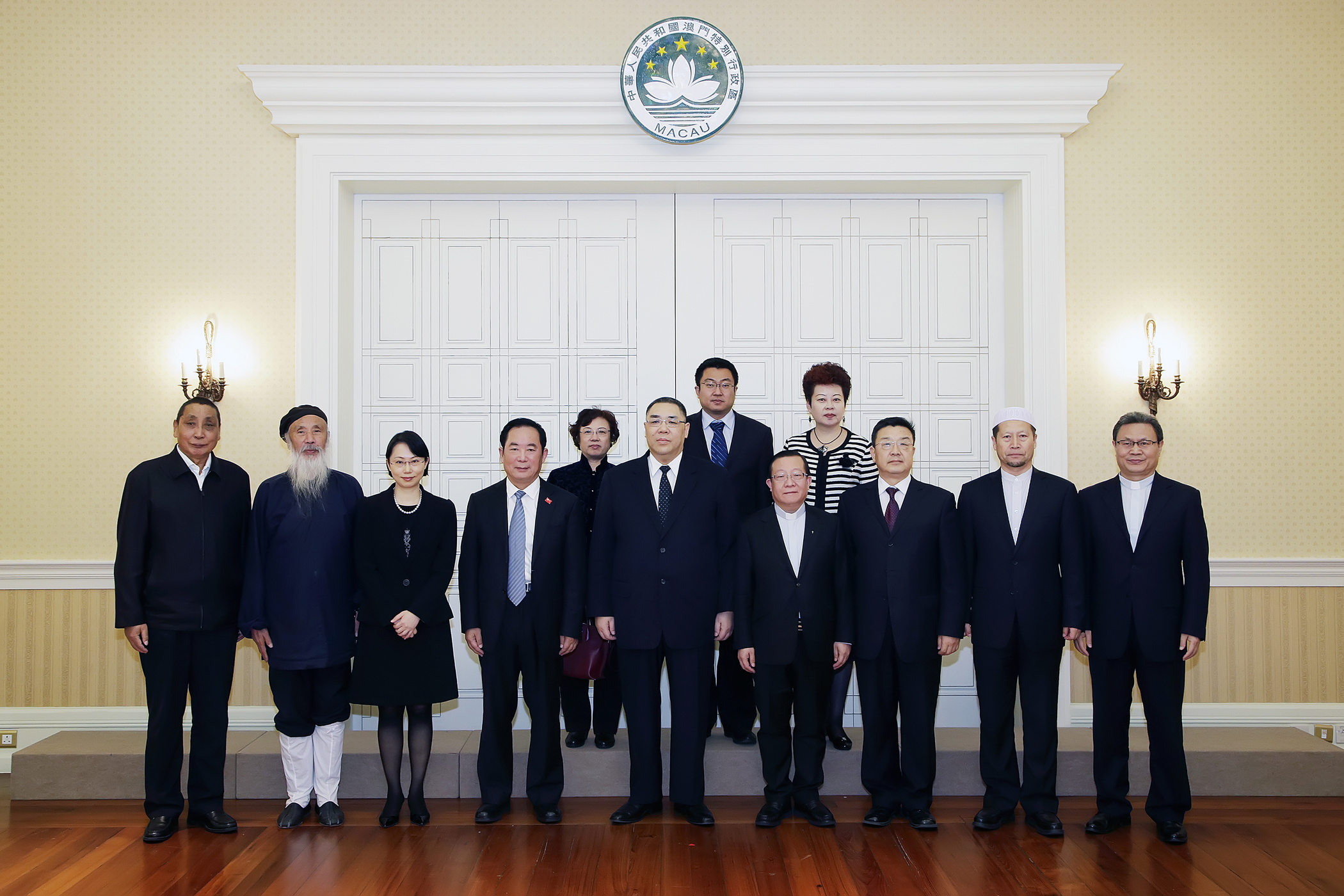 Neste encontro estiveram ainda presentes a chefe do Gabinete do Chefe do Executivo, O Lam, o vice-presidente do Comité para os Assuntos Étnicos e Religiosos do Comité Nacional da CCPPC e presidente da Conferência Episcopal da Igreja Católica na China, Ma Yinglin, o vice-presidente do Comité para os Assuntos Étnicos e Religiosos do Comité Nacional da CCPPC e presidente do Conselho Consultivo da Associação Taoísta da China, Ren Farong. Além destes, participaram na reunião também o vice-presidente do Comité para os Assuntos Étnicos e Religiosos do Comité Nacional da CCPPC, Yang Xiaobo, o membro permanente da CCPPC, vice-presidente da CCPPC da província de Gansu e vice-presidente da Associação Budista da Província de Gansu, De Wacang, assim como o membro permanente da CCPPC e presidente da Associação do Islamismo da China, Yang Fanming, e o membro permanente da CCPPC e presidente da Associação do Cristianismo da China, Gao Feng.