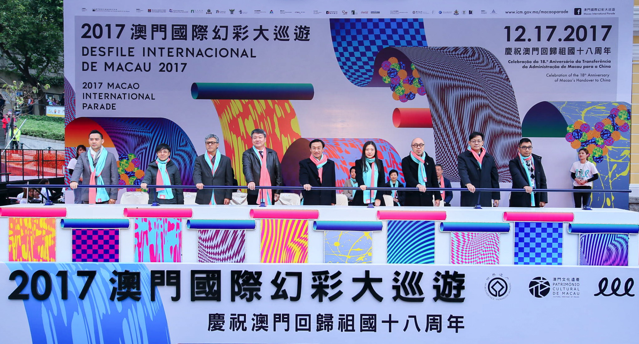 O “Desfile Internacional de Macau 2017”, organizado pelo Instituto Cultural (IC), em celebração do 18.º aniversário da Transferência da Administração de Macau para a China, teve lugar no dia 17 de Dezembro (Domingo). Este ano, o Desfile tem como tema “Histórias da Cidade de Macau e do seu Património Histórico”, convidando residentes e turistas a participarem numa festa de “Amor, Paz e Integração Cultural”, celebrando em conjunto a transferência da administração. Este ano, o Desfile teve mais de 150 mil de espectadores, incluindo os membros do público que participaram no evento e os espectadores que assistiram à emissão ao vivo na televisão e nos diversos ecrãs instalados em diferentes zonas. O IC lançou pela primeira vez a transmissão ao vivo nas novas mídias, atraiu mais de 200 mil de espectadores que assistiram às emissões em várias plataformas online, incluindo a aplicação móvel de CCTV, aplicação móvel e página electrónica de NEWSCCTV, Weibo de CCTV, aplicação móvel Toutiao, página electrónica Baijia Baidu, a página do Desfile no Facebook, a plataforma multimédia da TDM (página electrónica, aplicação móvel, Facebook e Wechat da TDM), os quais celebraram assim em conjunto esta ocasião.
