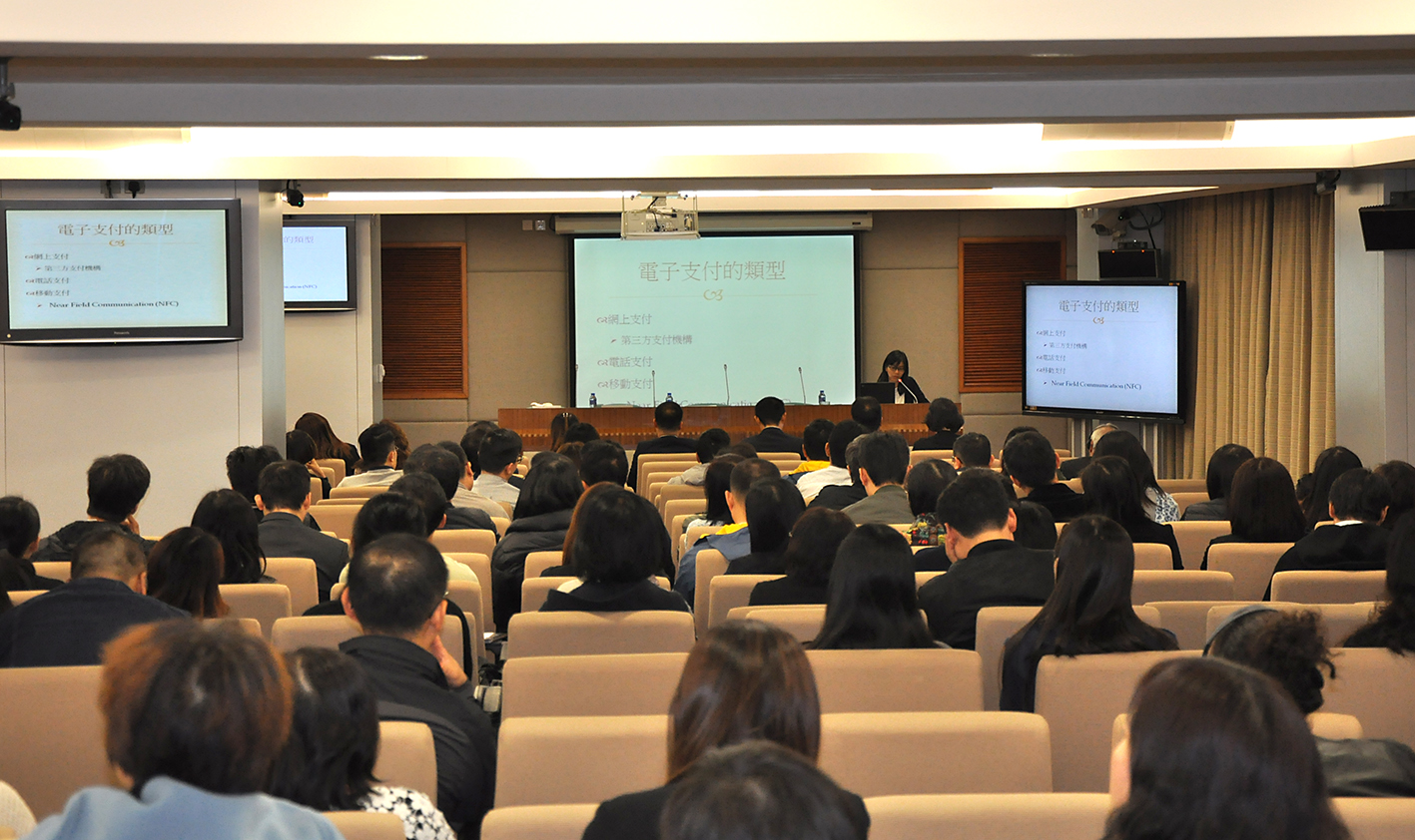 O Doutor Wang Xiaotian e a Doutora Lao Mei Peng apresentaram, respectivamente os temas de “Prática de construção com segurança do pagamento electrónico” e “Tendências de desenvolvimento do pagamento electrónico de Macau e medidas de protecção de dados pessoais”, a cerca de uma centena de responsáveis e representantes dos serviços públicos, discutindo os produtos de pagamento electrónico e as medidas de segurança, bem como tendências de desenvolvimento do pagamento electrónico.