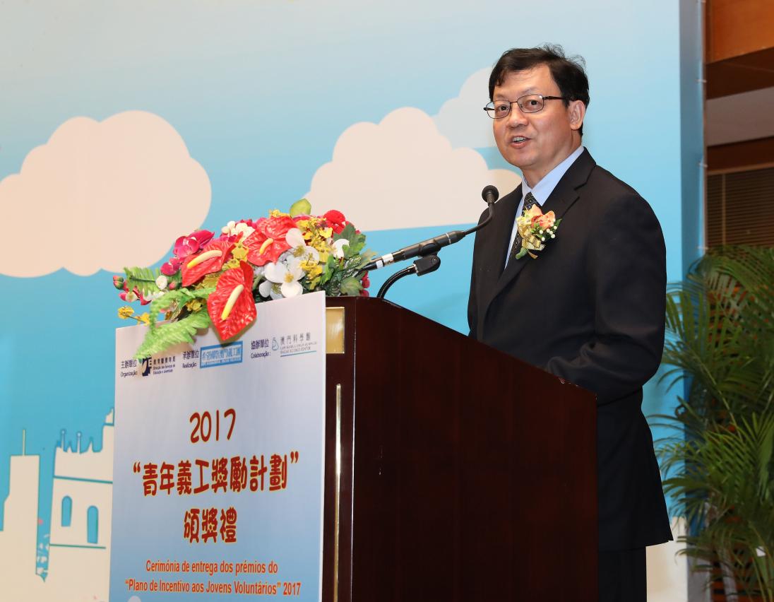 O Director da DSEJ, Lou Pak Sang, elogiou, no seu discurso, o esforço e contributo prestados pelos jovens voluntários, no último ano, especialmente após a ocorrência do tufão Hato, com um grande empenho na reconstrução da cidade. A DSEJ irá desempenhar activamente um papel de coordenação do Governo, dedicando-se à comunicação com a comunidade e escolas para alargar o número de associações participantes. Ao mesmo tempo, agradeceu o apoio prestado pelas numerosas instituições e escolas participantes que proporcionam acções de formação adequadas e vários tipos de voluntariado.