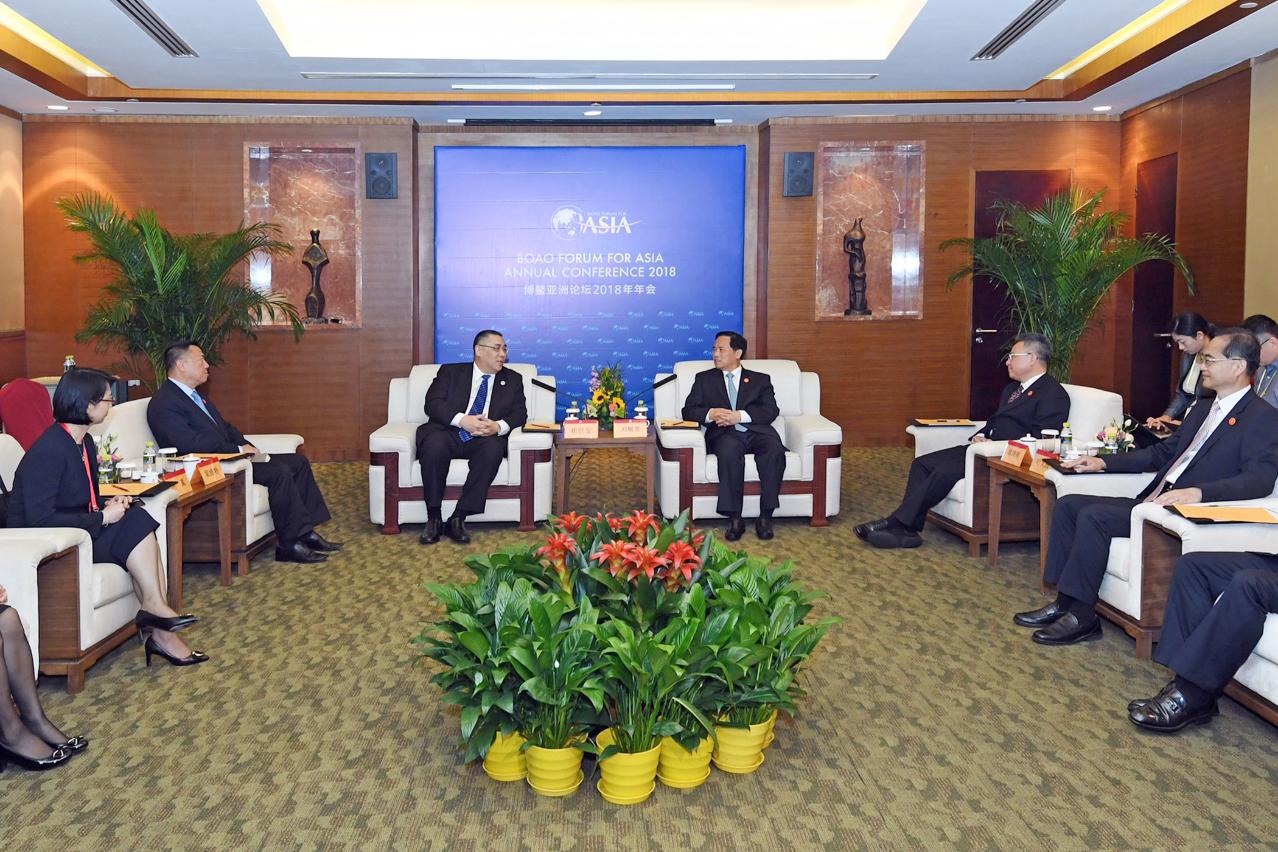 O encontro decorreu, esta tarde, no centro internacional de reuniões do Fórum Boao para a Ásia, contando com a presença do comissário do Ministério dos Negócios Estrangeiros da República Popular da China em Macau, Ye Dabo.