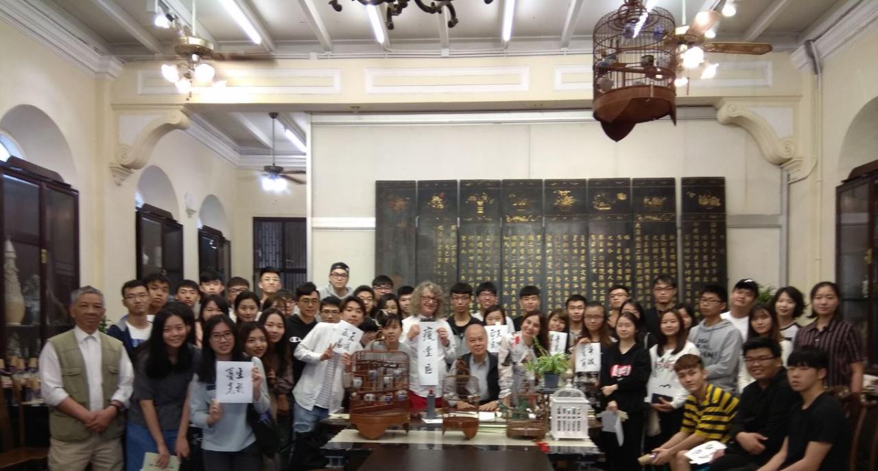 The topic of this activity was ‘birdcage’, a well-known object to people from both Chinese and Western cultures. The art house owns a collection of birdcages that can be traced back to the last century. From the explanation of professors, the students gained a better understanding of birdcages and their cultural values. Choi also presented his calligraphy works to students as souvenirs.