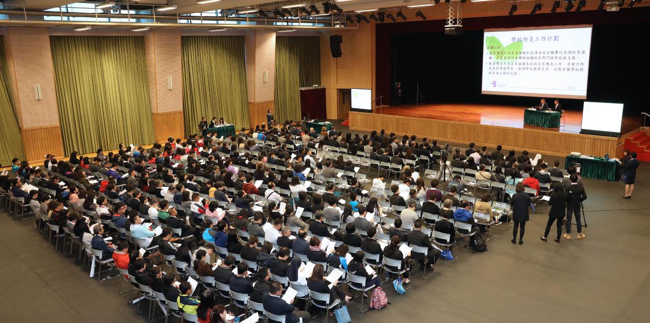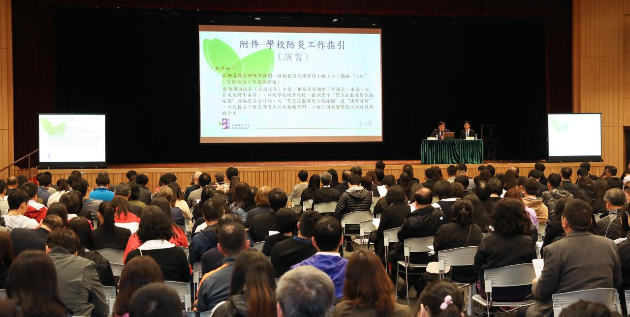A fim de reforçar a consciência do pessoal escolar para as situações de crise resultantes de catástrofes, aumentar os seus conhecimentos e técnicas de prevenção das mesmas e minimizar os danos causados nas escolas por catástrofes futuras, a Direcção dos Serviços de Educação e Juventude (DSEJ) e os Serviços de Polícia Unitários realizaram uma sessão de esclarecimento dos trabalhos de prevenção de catástrofes nas escolas, na tarde do dia 16 de Abril de 2018, no auditório da Escola Kao Yip, que contou com a presença do director da DSEJ, Lou Pak Sang, o Comissário dos Serviços de Polícia Unitários, Fan Ka Wa, as chefias da DSEJ e ainda dirigentes e o respectivo pessoal de 77 escolas, num total de mais de 300 participantes.
