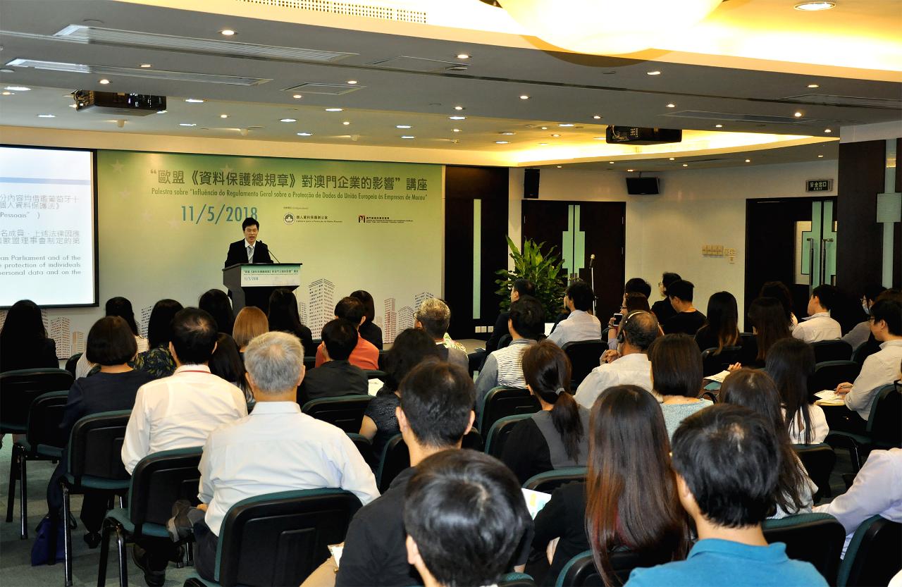 Com o objectivo de ajudar as empresas relevantes de Macau a responder activamente às últimas mudanças do regulamento da União Europeia, o GPDP e o IPIM organizaram a Palestra sobre “Influência do Regulamento Geral sobre a Protecção de Dados da União Europeia às empresas de Macau” realizada na Sala Polivalente, 19.o andar do Edifício “China Civil Plaza”, Macau, pelas 15:00 do dia 11 de Maio, na palestra, o chefia funcional da área jurídica do GPDP, Ho Heng Lam apresentou os pormenores do novo regulamento. As duas entidades esperam que as empresas de Macau enriqueçam os conhecimentos sobre o referido regulamento através da palestra e que discutam a influência deste regulamento à Macau, a fim de fortalecer a consciência da protecção de dados pessoais e compreender as últimas tendências em questão de protecção de dados pessoais a nível internacional.