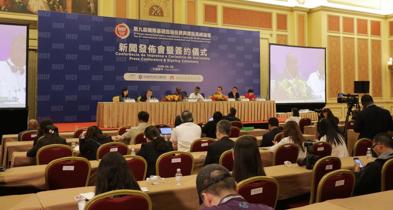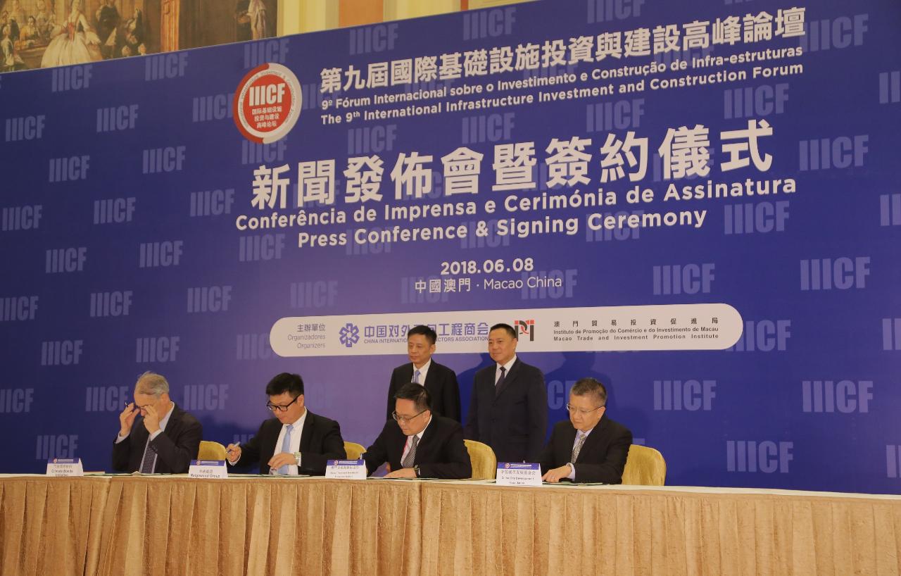 Realizou-se hoje a cerimónia de assinatura de protocolos e conferência de imprensa sobre o “9.º Fórum Internacional sobre o Investimento e Construção de Infra-estruturas. O referido evento foi organizado sob orientação do Ministério do Comércio da China, do Governo da Região Administrativa Especial de Macau e do Gabinete de Ligação do Governo Popular Central na Região Administrativa Especial de Macau, e contou com a organização conjunta da Associação Internacional dos Construtores da China e do Instituto de Promoção do Comércio e do Investimento de Macau. Foram convidados para participar na referida conferência de imprensa, o Ministro de Desenvolvimento da Megalópole e da Região Ocidental de Sri Lanka, Patalia Champika Ranawak, o Ministro de Infra-estruturas da Ucrânia, Volodymyr Omelyan, o Ministro de Habitação e do Desenvolvimento de Infra-estruturas de Zambia, Ronald Kaoma Chitotela, o Presidente da Associação Internacional dos Construtores da China, Fang Qiuchen,o Presidente do Instituto de Promoção do Comércio e do Investimento de Macau (IPIM), Jackson Chang e o Vice-Director do Departamento para os Assuntos da América e da Oceânia do Ministério do Comércio da China, Shao Yingjun.