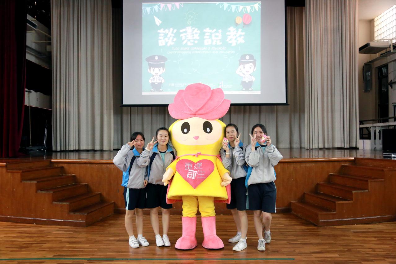 A actividade “Tudo sobre correcção e educação”, coorganizada pela Direcção dos Serviços Correccionais e pela Direcção dos Serviços de Educação e Juventude, visa elevar a consciência dos jovens face ao cumprimento da Lei e Disciplina, promovendo um crescimento saudável dos mesmos, bem como divulgar a mensagem de apoio à reabilitação. A referida actividade é realizada em duas fases, sendo a primeira a deslocação do pessoal da DSC à escola local, para a realização das acções interactivas com os estudantes e jogo de perguntas, bem como a apresentação de exemplos de prática de crimes de forma descuidada, aos mesmos, elevando a sua consciência de prevenção criminal; Em simultâneo, aproveita-se a Embaixadora da Solidariedade “Shiny” para apresentar a missão dos trabalhos correccionais, esperando que os estudantes possam desenvolver o espírito de cuidado e amor com “Shiny”, no sentido de apoiar a reintegração social dos reclusos e jovens internados. E, a segunda fase da actividade é o convite aos estudantes para visitarem os organismos dependentes da DSC: o Estabelecimento Prisional de Coloane e o Instituto de Menores, através do diálogo directo entre os estudantes e jovens internados/reclusos, permitem a estes conhecerem concretamente as consequências legais do crime e, por outro lado, aconselhando os estudantes a dar maior importância às próprias condutas, no sentido de não cometerem crimes. A primeira sessão da actividade “Tudo sobre correcção e educação” foi realizada no dia 29 de Maio e o pessoal da DSC deslocou-se à Escola Secundária Estrela do Mar, para um intercâmbio com mais de 200 estudantes do ensino secundário desta Escola, e no dia 14 de Junho, um conjunto de 33 estudantes da mesma Escola foram convidados para a visita à prisão, aprofundando assim os conhecimentos sobre os serviços correccionais.
