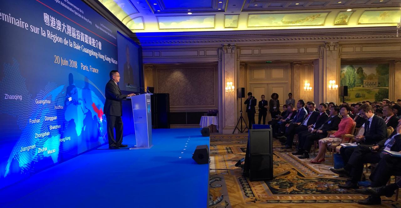 Em face do iminente lançamento do plano de desenvolvimento da Grande Baía Guangdong-Hong Kong-Macau, com vista a reflectir o intercâmbio e a cooperação económica e comercial no seio da região, promovendo junto de entidades no exterior as oportunidades económicas da Grande Baía Guangdong-Hong Kong-Macau, representantes do Governo Popular da Província de Guangdong, do Governo da Região Administrativa Especial de Hong Kong e do Governo da Região Administrativa Especial de Macau organizaram em conjunto um “Seminário sobre a Grande Baía Guangdong-Hong Kong-Macau” no dia 20 de Junho, em Paris, França. Participaram no referido evento mais de 400 representantes do governo e da comunidade empresarial daquele país, tendo no decorrer do qual, os dirigentes governamentais de Guangdong, Hong Kong e Macau incentivado as empresas francesas a investirem na Região da Grande Baía Guangdong-Hong Kong-Macau, tirando proveito das vantagens comerciais dos três territórios.