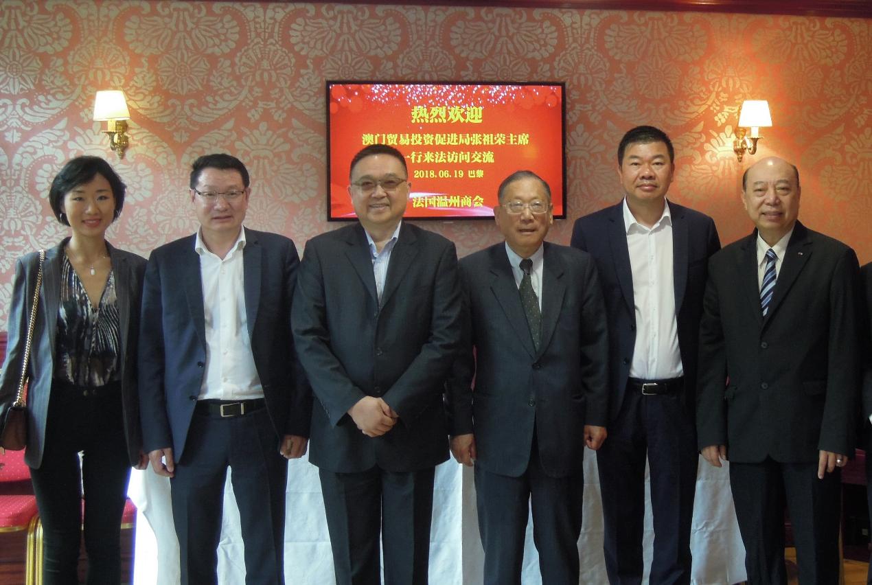 Além disso, Dr. Jackson Chang visitou na França o Presidente da Associação de economia e comércio entre a China e Europa, Dr. Ding Weixing, e o Presidente da Associação dos Comerciantes de Wenzhou na França, Dr. Wu Jingping; durante a reunião, trocaram opiniões sobre o ambiente do investimento em Macau e a situação dos comerciantes chinêses na Europa. Dr. Jackson Chang convidou as duas associações para organizar as empresas a participar nas exposições e convenções de grande envergadura que se realizam em Macau sob a organização do IPIM.