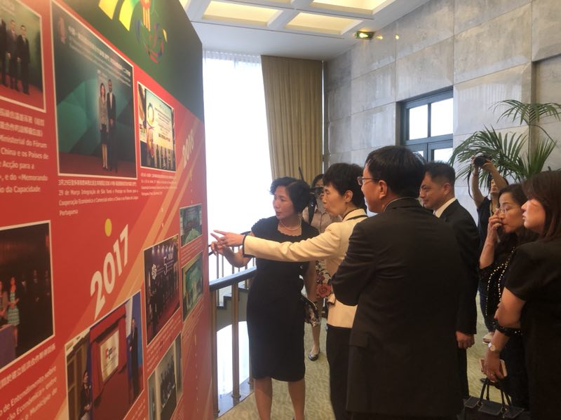 A delegação do Secretariado Permanente do Fórum de Macau deslocou-se a Portugal, entre 19 e 23 de Junho, para participar no “Encontro para a Cooperação Económica e Comercial entre a China e os Países de Língua Portuguesa – Lisboa 2018”. Durante este Encontro, o Secretariado Permanente realizou, no 21 de Junho, em Lisboa, uma recepção coquetel por ocasião do 15.º Aniversário do Estabelecimento do Fórum para a Cooperação Económica e Comercial entre a China e os Países de Língua Portuguesa, Por ocasião desta recepção foi apresentada uma exposição de fotos com eventos do Fórum.