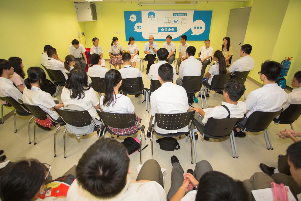 Por outro lado, a fim de aprofundar o conhecimento sobre a situação e as necessidades de emprego dos jovens com deficiência, a DSAL, no dia da cerimónia de lançamento, realizou ainda a actividade “Diálogo franco entre jovens e Director”, tendo, Wong Chi Hong, Director da DSAL, partilhado com os estagiários a situação do mercado de trabalho e a preparação antes de se juntarem à mão-de-obra, ouvindo as preocupações dos alunos sobre esse processo de preparação e na entrada no mercado de trabalho. A actividade decorreu em ambiente harmonioso e animado. A DSAL espera que através da interacção com os alunos, estes sintam que o Governo dá atenção e se preocupa com os seus problemas de emprego.
