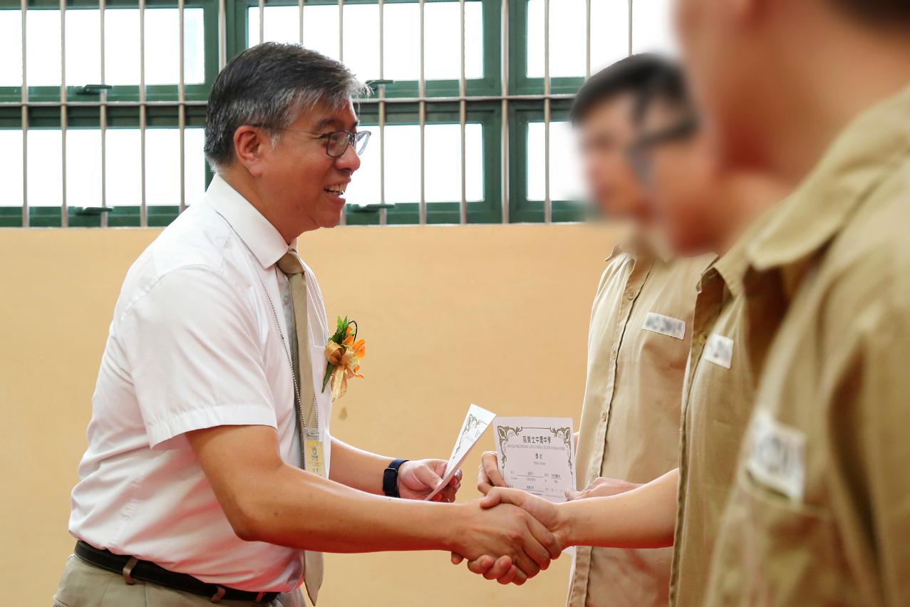 Na cerimónia, a chefe da Divisão – Ho Sio Mei e o Director – Leong Iao Cheng proferiram respectivamente os discursos. A primeira agradeceu o apoio prestado pela DSEJ, no sentido de ajudar os reclusos a adquirem habilitações académicas, e ao mesmo tempo, a mesma estimulou os participantes a aproveitarem melhor o tempo e esforçarem continuadamente para mudar a vida própria, em preparação para a vida depois da libertação. E, o Director Leong, partilhou a experiência de um ex-recluso, sobre a passagem deste de ser discriminado, a ser aceitado por outros, a fim de estimular os estudantes presos a enfrentarem com coragem os desafios da vida, aceitando em primeiro lugar a si próprio. Além disso, o Director Leong esteve satisfeito com os resultados de estudo dos reclusos, estimulando a estes a continuarem o esforço na aprendizagem. Por fim, os reclusos apresentaram canções, teatro e discurso para agradecer os professores e os convidados, tendo a cerimónia terminda num ambiente apreciativo e caloroso.