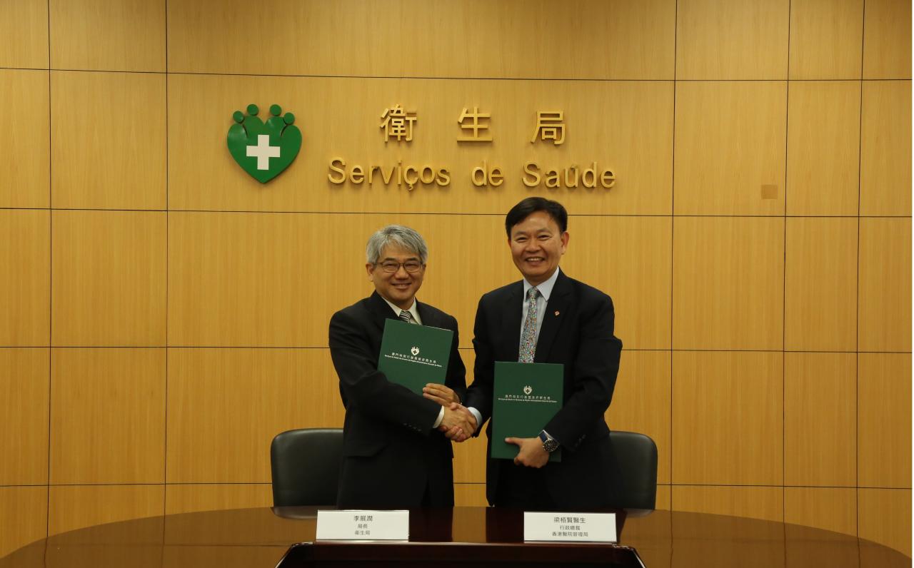 O Director dos Serviços de Saúde, Dr. Lei Chin Ion e o Chefe Executivo da Autoridade Hospitalar da Região Administrativa Especial de Hong Kong, Dr. Leung Pak-yin, JP., renovaram o acordo de cooperação entre as entidades por um período de cinco (5) anos (2018-2023). Desde a assinatura do acordo de cooperação em 2007 e a renovação do acordo de cooperação em 2013, ambas regiões criaram e desenvolveram relações amigáveis e cooperativas em diversas áreas do âmbito dos cuidados de saúde. O conteúdo do acordo abrange os intercâmbios académicos e técnicos, formação dos profissionais de saúde, troca de informações, gestão da assistência médica, assistência médica urgente e apoio de materiais de emergência, encaminhamento de casos, monitorização e controlo de doenças, entre outros.