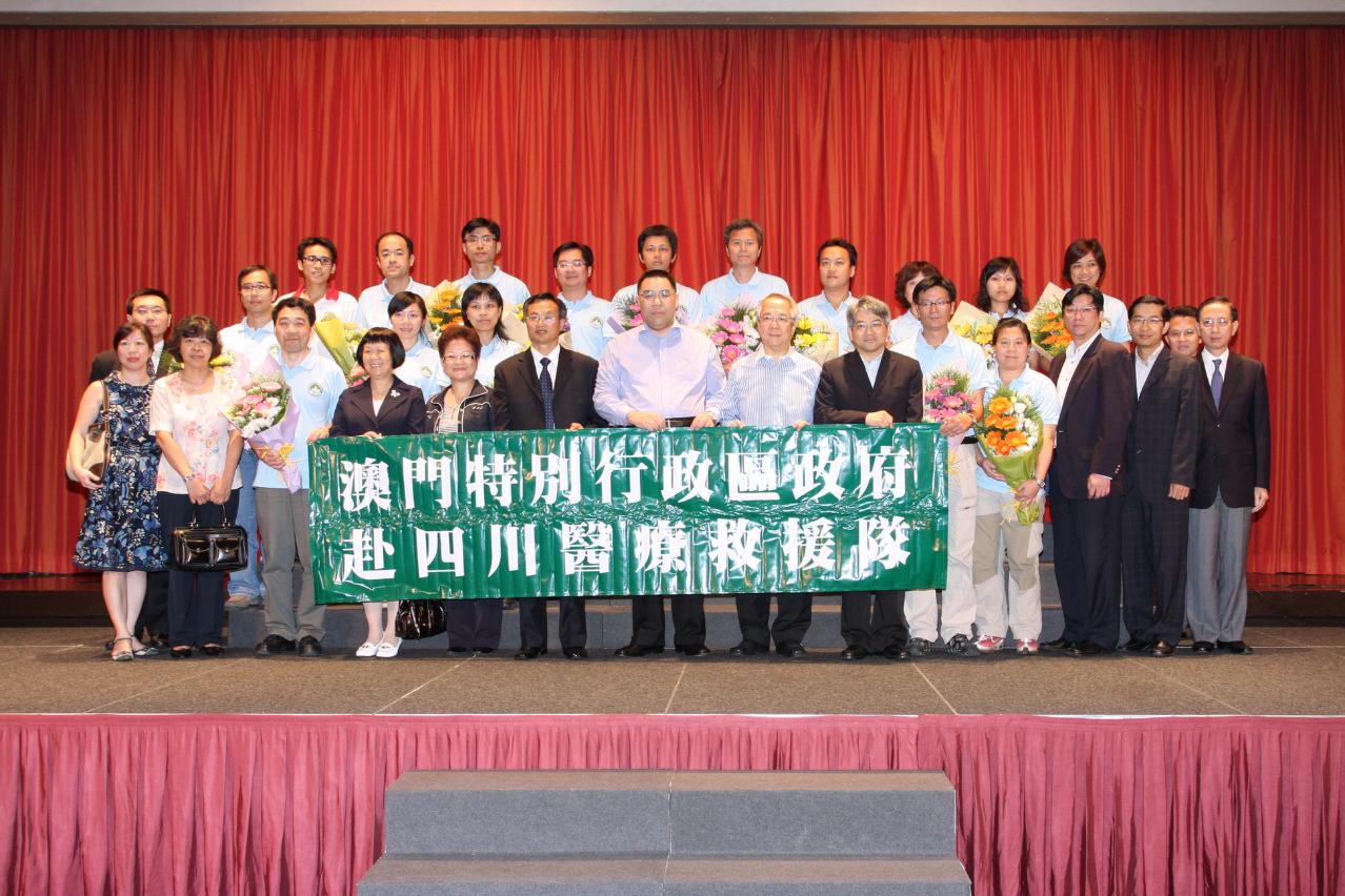 Em 2008, após o terramoto de Wenchuan, em Sichuan, os Serviços de Saúde organizaram três equipas de resgate médico, compostas pelo Centro Hospitalar Conde de São Januário, pelo Hospital Kiang Wu e pela Cruz Vermelha de Macau e forneceram serviços de assistência médica às áreas de desastre.