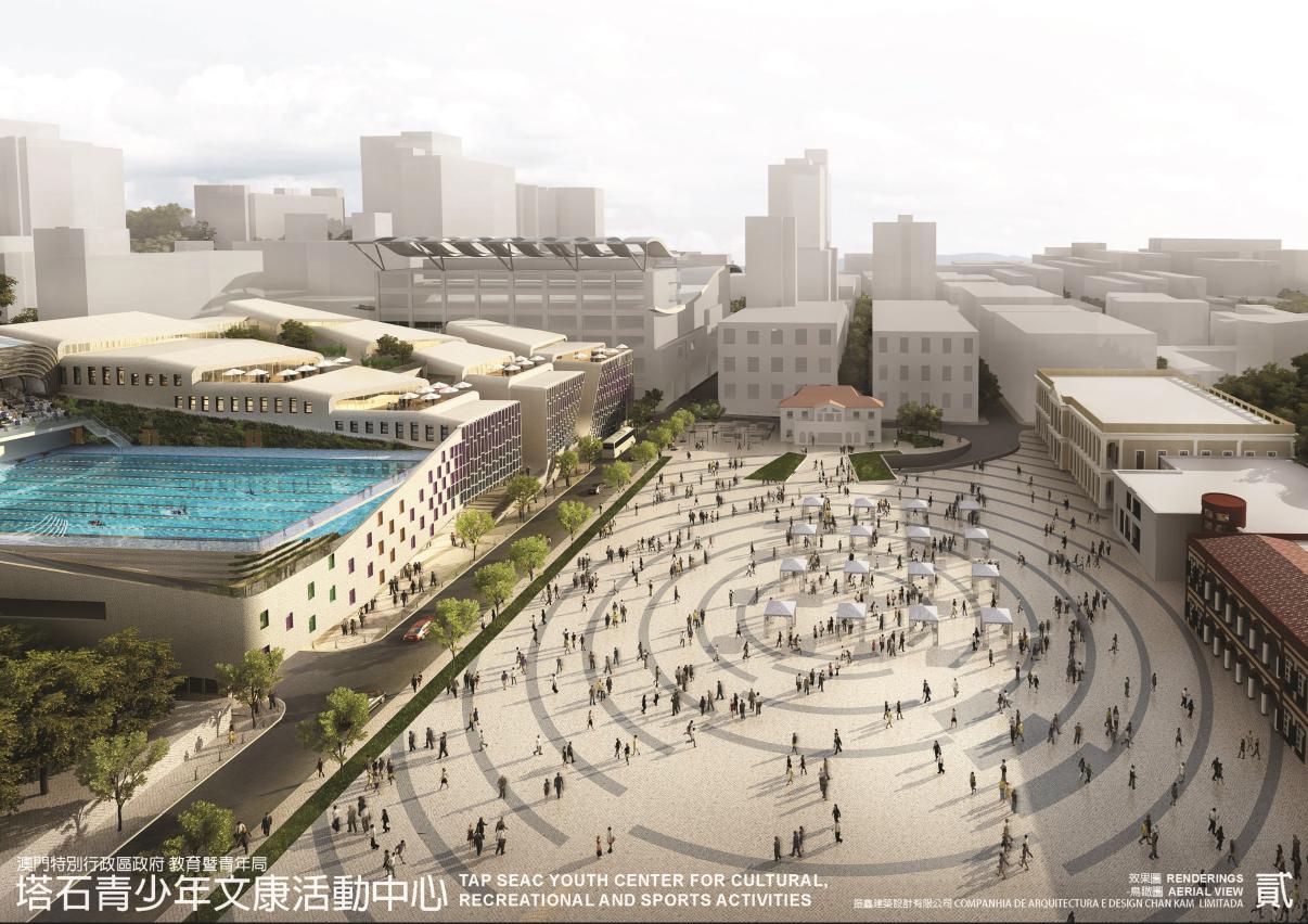 O Centro Juvenil de Actividades Culturais, Recreativas e Desportivas do Tap Seac incluirá um parque de estacionamento público, piscinaaquecida, de temperatura constante, aberta durante todo o ano, zona de actividades culturais e recreativas para jovens, sala de artes e espectáculos, bem como o Conservatório de Macau, sendo que, a maior parte destas instalações vai ser aberta à utilização pública. Os anúncios do referido concurso público do serviço de concepção e planeamento foram publicados nos dias 27 de Setembro e 25 de Outubro de 2017, a cerimónia do acto público do concurso realizou-se no dia 6 de Março de 2018, foram recebidas 11 propostas, entre as quais 9 foram admitidas pela comissão de abertura das propostas.