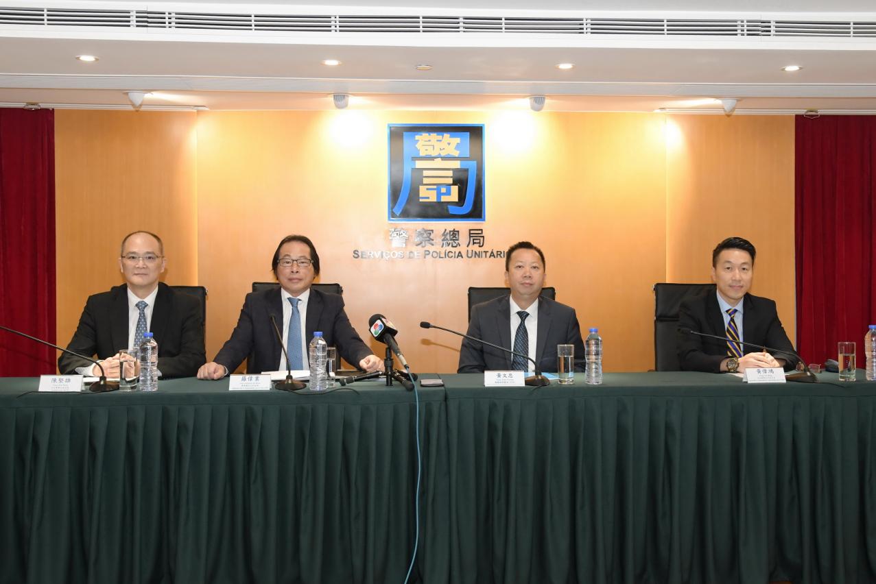 Realizou-se, no dia 23 de Agosto, pelas 10h00, em simultâneo entre as autoridades policiais de Guangdong, Hong Kong e Macau, a conferência de imprensa sobre o balanço da Operação “Trovoada 18”. A conferência em Macau teve lugar nos Serviços de Polícia Unitários (SPU) e foi presidida pelo senhor Adjunto do Comandante-geral dos SPU, João Augusto da Rosa, com a presença dos senhores Adjunto do Director-geral (Substituto) dos Serviços de Alfândega da RAEM (SA), Vong Man Chong, Subdirector da Polícia Judiciária (PJ), Chan Kin Hong e Segundo-comandante substituto do Corpo de Polícia de Segurança Pública (CPSP), Vong Vai Hong.