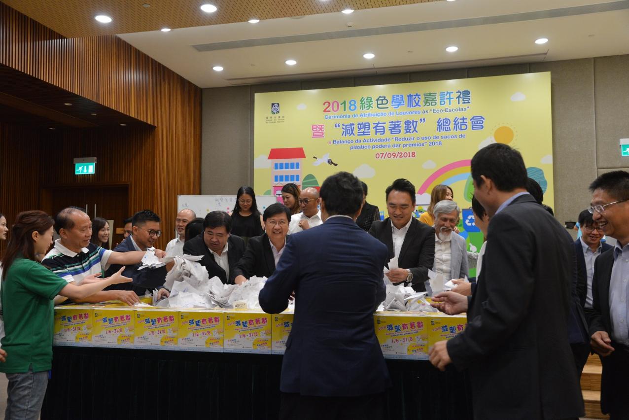 Com o intuito de continuar a encorajar e incentivar os cidadãos a reduzir o uso de sacos de plástico, a DSPA organizou, pelo 6.º ano consecutivo, a actividade “Reduzir o uso de sacos de plástico poderá dar prémios”, em colaboração com diversos serviços públicos, associações e organizações. A actividade contou este ano com o apoio de mais de 300 estabelecimentos comerciais, incluindo as sucursais. A actividade registou mais de 260 mil participantes durante as seis edições, com o que foi possível reduzir o uso de, pelo menos, 260 mil sacos de plástico, o que reflecte a prática efectiva da redução do uso de plástico em toda a sociedade.