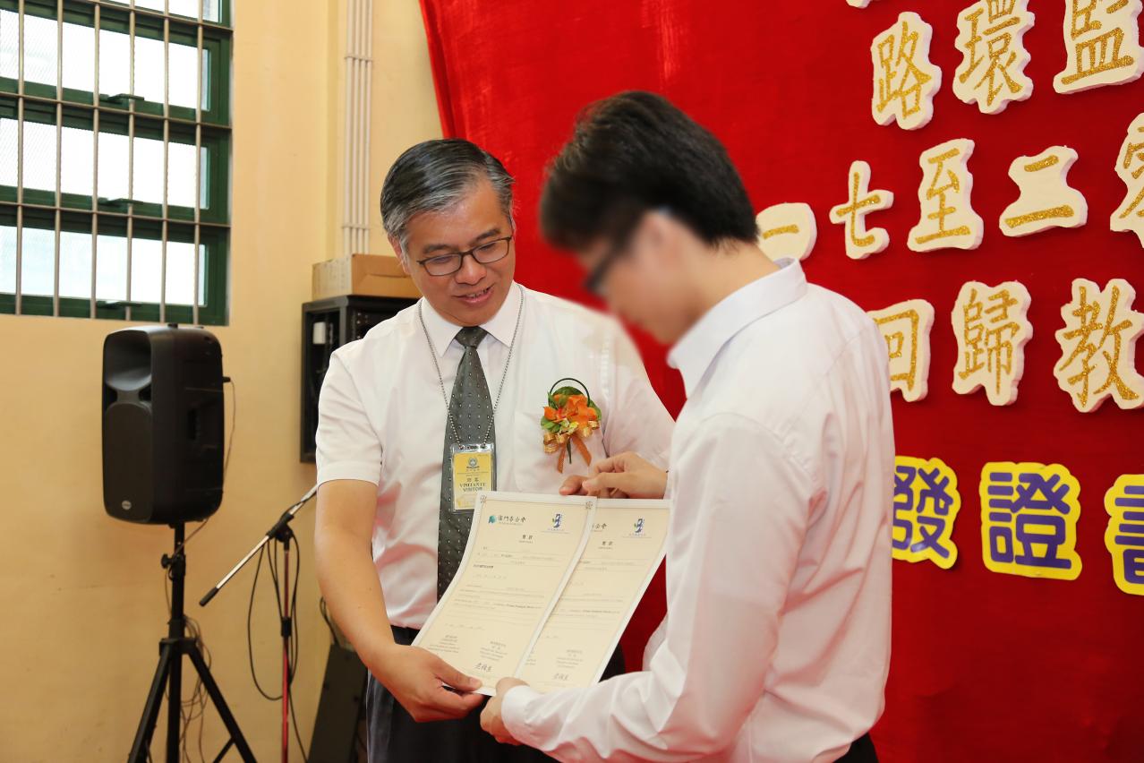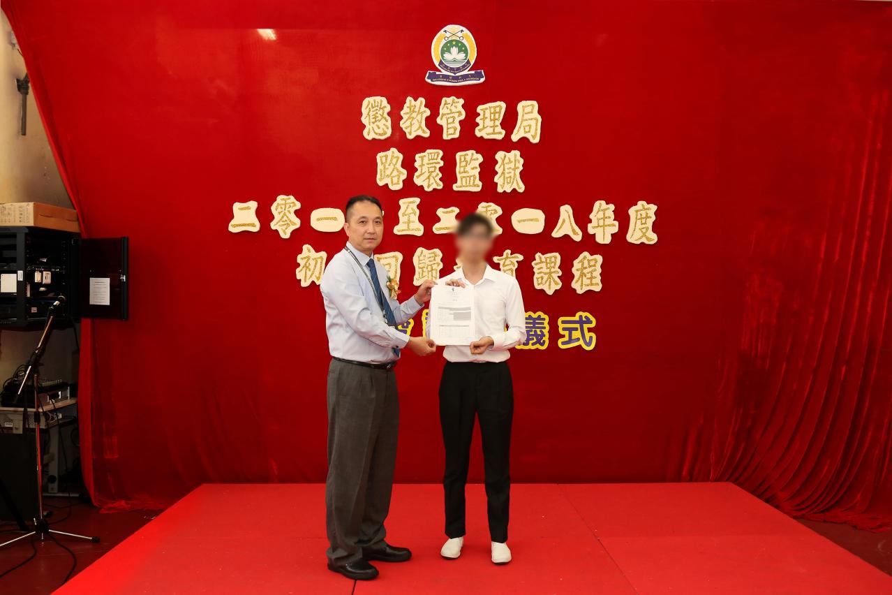 Na cerimónia, a um total de 14 reclusos foram atribuídos certificados de classificação, estes concluíram respectivamente as disciplinas do Ensino Secundário Geral Recorrente e o exame geral especial; Um recluso concluiu todas as disciplinas do curso, atingindo a qualificação de ensino secundário geral, e ao mesmo tempo, conseguiu classificações “excelentes” nas disciplinas de chinês, ciência e tecnológica, tendo-lhe sido atribuído o prémio da Fundação Macau. Através do esforço, este recluso conseguiu o diploma de ensino secundário geral, o que favorece o seu prosseguimento do estudo no ensino secundário complementar, elevando o nível de habilitação literária, ou continuar a formação profissional, no sentido de se tornar mais competitivo, após a libertação.