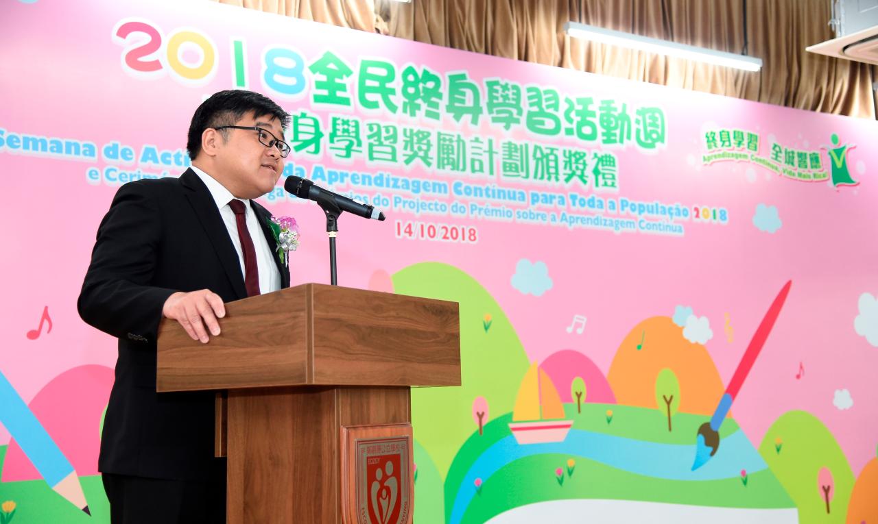 O Dia de Promoção da Semana da Actividade de Aprendizagem Contínua para Toda a População 2018 e Cerimónia de Entrega de Prémios do Projecto do Prémio sobre a Aprendizagem Contínua teve lugar no dia 14 de Outubro, na Escola Oficial Zheng Guanying. Os convidados de honra participantes nesta cerimónia incluíram o chefe do Departamento de Ensino da DSEJ, Kong Ngai, a chefe do Departamento de Gestão de Bibliotecas Públicas do Instituto Cultural, Tang Mei Lin, o presidente da Direcção da Associação de Educação de Adultos de Macau, João Baptista Manuel Leão, o presidente da Direcção da Associação de Educação Permanente de Macau, Choi Weng Tat, a vice-presidente da Direcção da Macao Society of Continuing Education, Suey So, a presidente da Direcção da União Geral das Associações dos Moradores de Macau, Ng Siu Lai, a chefe do Centro de Serviços da Zona Norte da Federação das Associações dos Operários de Macau, Chio Lan Ieng, a vice-presidente da Direcção da Associação Geral das Mulheres de Macau, Cheong Pui Peng, o director da Escola Secundária Nocturna Xin Hua, Lei Meng Kei, a subdirectora da Escola Secundária Millennium, Leong Pek Chu, o chefe da Escola Seong Fan, Hoi Wai Meng, o presidente da Associação de Estudante da Aprendizagem ao Longo da Vida de Macau, Chao Wo Kan e o vice-reitor de The Open University of Zhuhai, Chen Hua. Os convidados distribuíram os prémios aos cidadãos contemplados, como forma de elogiar os que obtiveram um aproveitamento excelente na aprendizagem, após os trabalhos ou as aulas. Nesta edição foram atribuídos 194 prémios. Os premiados partilharam as suas experiências de aprendizagem, permitindo aos participantes testemunharem os frutos obtidos pela sua aprendizagem. Além disso, foram ainda realizados vários espectáculos de palco, bem como jogos e workshops sob o tema da aprendizagem contínua, que atraíram a participação de grande número de cidadãos.