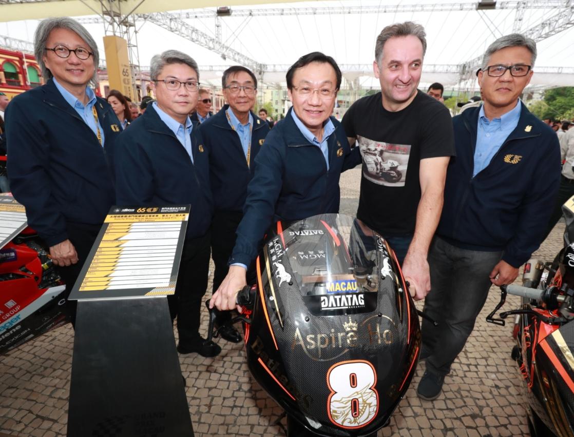 Antes da exposição, realizou-se a cerimónia de abertura do evento, com a presença do Secretário para os Assuntos Sociais e Cultura e Presidente da Comissão Organizadora do Grande Prémio de Macau (COGPM), Doutor Alexis Tam Chon Weng, Chefe de Gabinete do Secretário para os Assuntos Sociais e Cultura, Ip Peng Kin, Presidente do Instituto do Desporto e Coordenador da COGPM, Pun Weng Kun; Directora da Direcção dos Serviços de Turismo, Helena de Senna Fernandes; Presidente da Assembleia Geral da Associação Geral de Automóvel de Macau-China, Lo Keng Chio; Presidente da Direcção da Associação Geral de Automóvel de Macau-China e Coordenador da Subcomissão Desportiva da COGPM, Chong Coc Veng; Coordenadores-Adjuntos da COGPM, Lau Cho Un e Lam Lin Kio; Sénior Vice-Presidente das Relações Cooperativas e da Comunidade do Suncity Grupo, Gina Lei; Membros da COGPM e membros do Conselho do Desporto, e entre outros.