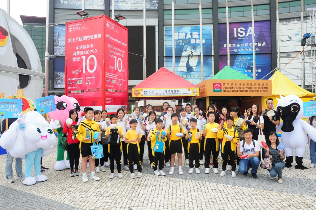 A Direcção dos Serviços de Protecção Ambiental organizou a actividade “As Mascotes da DSPA acompanham-te durante o Festival de Gastronomia”, na qual participaram mais de 40 docentes, alunos e seus pais, permitindo a redução de produção de resíduos.