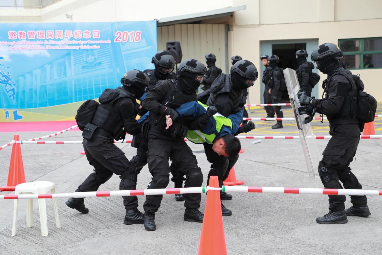 Após a atribuição de louvores e cartas de agradecimento, a DSC organizou especialmente uma demonstração de técnicas de contenção pela Equipa Táctica de Intervenção do Estabelecimento Prisional de Coloane, simulando reclusos em estado descontrolado e resistência às ordens. A equipa usou o mínimo de tempo e de força, com a aplicação de várias técnicas de contenção e estratégias cooperativas, para conter com sucesso os reclusos, restaurando a ordem e segurança na cela.