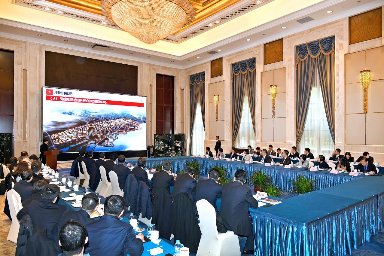 Na mesma sessão de intercâmbio, Chui Sai On e a comitiva tiveram ainda a oportunidade de assistir a uma apresentação detalhada sobre o planeamento geral do Parque e do desenvolvimento das industrias.