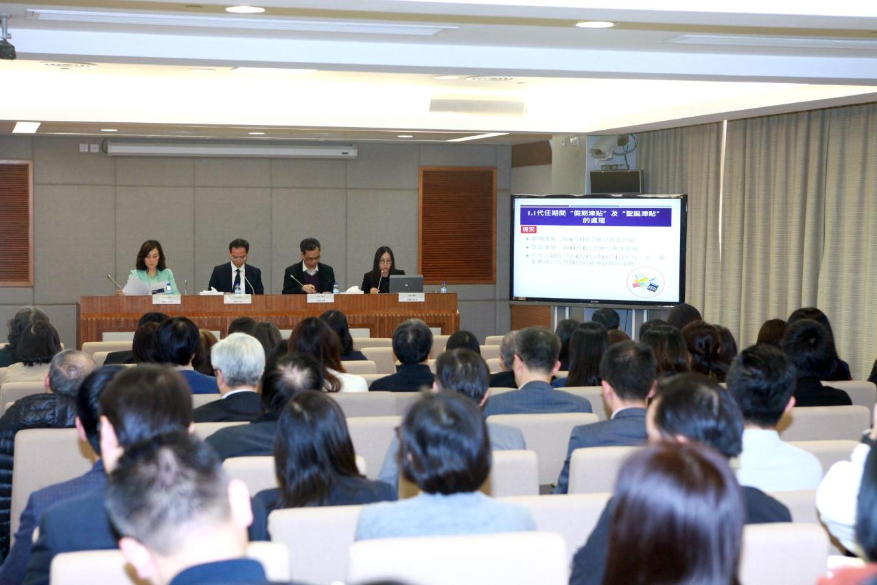 Para poder auscultar amplamente as opiniões dos trabalhadores da Função Pública e aperfeiçoar a referida revisão, o SAFP, para além do envio do documento de consulta aos serviços públicos, também realizou recentemente 4 sessões de esclarecimento sobre os conteúdos da revisão para os serviços públicos, os representantes das associações dos trabalhadores da Função Pública e os trabalhadores da Função Pública, as referidas sessões de esclarecimento foram apresentadas pelo director do SAFP, Kou Peng Kuan, pela Subdirectora do SAFP, Joana Maria Noronha e pelo Chefe do Departamento das Relações entre os Trabalhadores dos Serviços Públicos do SAFP, Hui Kam Hon. As sessões de esclarecimento contaram com um total de mais de 500 participantes.