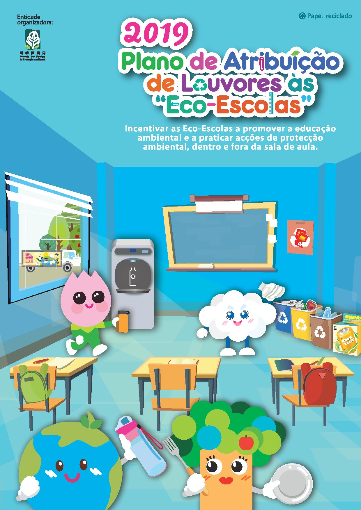 Este Plano de 2019 continua a disponibilizar o Prémio de Honra “Eco-Escolas” e o Prémio de Excelente Desempenho “Eco-Escolas”, elogiando todos os contributos dedicados pelas escolas participantes às acções de protecção ambiental. Tendo como tema este ano “É muito fácil reduzir os resíduos nas escolas”, os docentes e alunos aderentes poderão – pela participação no Concurso do Prémio “Projecto Pedagógico de Educação Ambiental” e no Prémio “Fãs da Escola Ecológica”, integrados no Plano mencionado – conceber ou organizar os diversos cursos ou actividades relacionados com a protecção ambiental, nomeadamente: a redução de garrafas de plástico, a recolha de pilhas e baterias usadas, a reciclagem de equipamentos de informática e de comunicação e de resíduos alimentares, etc., de modo a ajudar os alunos a estabelecerem um valor correcto para proteger o ambiente, promovendo um futuro desenvolvimento sustentável de Macau.