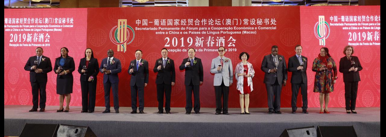 No dia 25 de Fevereiro, o Secretariado Permanente do Fórum para a Cooperação Económica e Comercial entre a China e os Países de Língua Portuguesa (Macau) ofereceu uma recepção coquetel por ocasião do Ano Novo Chinês no Hotel Grand Hyatt Pequim. A recepção contou com a presença do Vice-Ministro do Comércio, Dr. Wang Bingnan, do Secretário para a Economia e Finanças do Governo da RAEM, Dr. Leong Vai Tac, da Secretária-Geral do Secretariado Permanente do Fórum de Macau, Dra. Xu Yingzhen, dos representantes do Ministério do Comércio da “Comissão de Acção de Acompanhamento do Fórum de Macau”, dos Embaixadores dos Países de Língua Portuguesa em Pequim, dos Ex-Secretários-Gerais do Secretariado Permanente do Fórum de Macau, e ainda de alguns funcionários que participaram nas Conferências Ministeriais anteriores, representantes das instituições académicas e de comunicação social. A Secretária-Geral, Xu Yingzhen, apresentou as palavras de boas vindas, por sua vez, o Vice-Ministro do Comércio, Dr. Wang Bingnan, o Secretário para a Economia e Finanças do Governo da RAEM, Leong Vai Tac, e o decano dos corpos diplomáticos dos Países de Língua Portuguesa em Pequim, Embaixador da Guiné-Bissau, Dr. Malam Sambú, proferiram também os seus discursos.