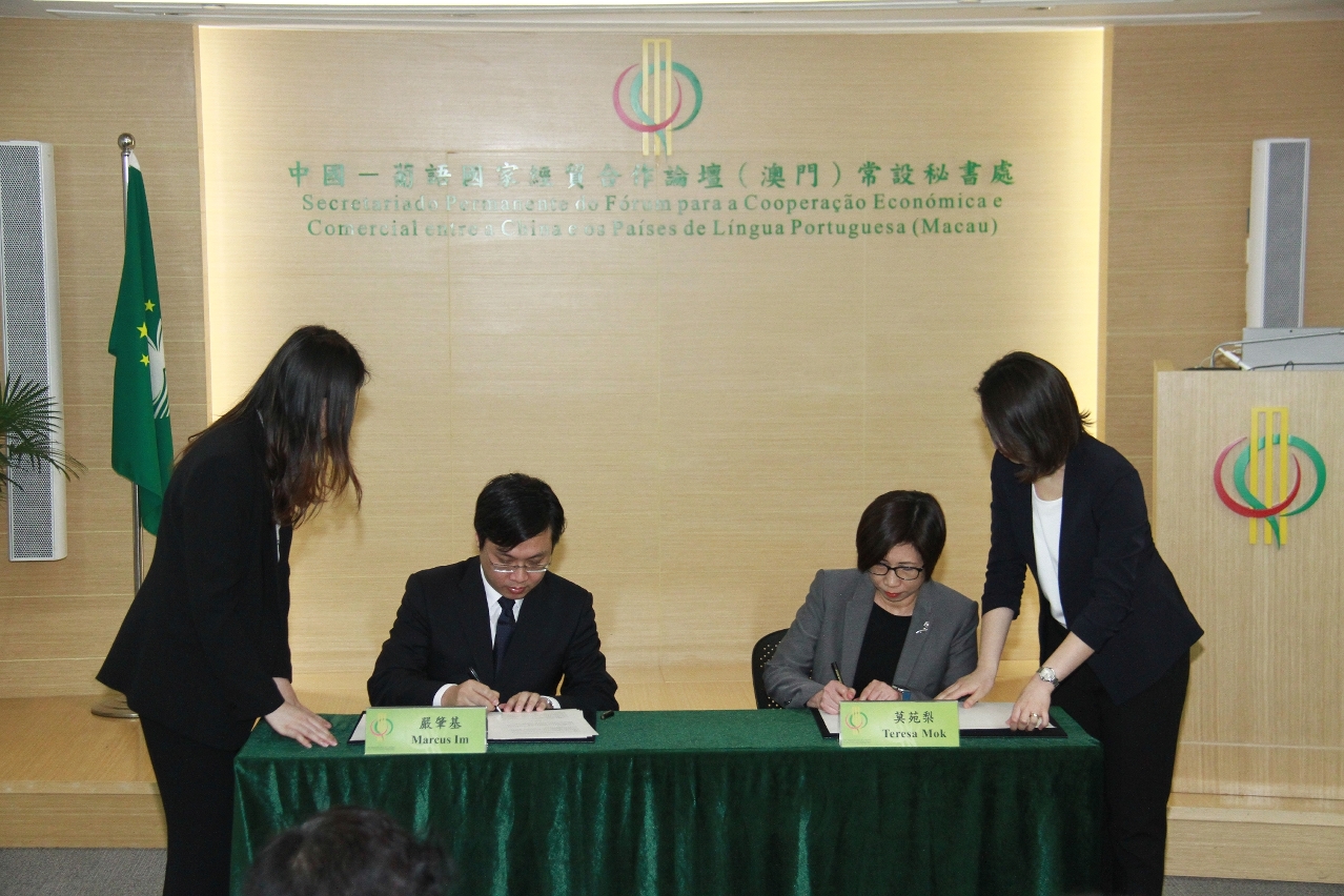 Celebrou-se no dia 21 de Março, entre o Gabinete de Apoio do Secretariado Permanente do Fórum para a Cooperação Económica e Comercial entre a China e os Países de Língua Portuguesa (GASPF), representado pela sua Coordenadora, Dra. Teresa Mok, e o Instituto Politécnico de Macau (IPM), representado pelo seu Presidente, Prof. Dr. Marcus Im Sio Kei, um Acordo de Cooperação sobre o Uso do “Sistema Auxiliar de Tradução Chinês-Português/Português-Chinês de Documentos Oficiais”. Este acordo é celebrado entre as Partes prevendo-se que essa cooperação irá dar um novo impulso aos trabalhos da construção da Plataforma de Serviços para a Cooperação Comercial entre a China e os Países de Língua Portuguesa.