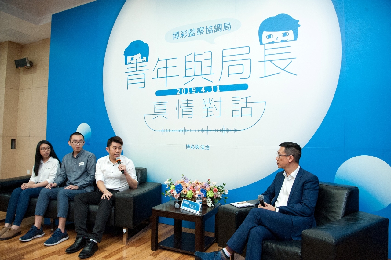 Sendo os jovens pilar do futuro da sociedade, a sua voz e sugestões têm merecido particular importância pelo Governo da RAEM. Nessa perspectiva, teve lugar no passado dia 11 de Abril na Faculdade de Direito da Universidade de Macau (UMAC), um encontro dos jovens com o director da DICJ, organizado por este organismo. Este evento proporcionou um espaço aos estudantes para diálogo aberto com o Dr. Paulo Martins Chan, director da DICJ. Durante o encontro, os jovens falaram sobre perspectivas do futuro desenvolvimento do sector do jogo na RAEM, assim como apresentaram sugestões para o aperfeiçoamento da legislação da exploração de jogos de fortuna ou azar.