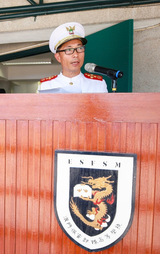 Na alocução, o Director da Escola Hoi Sio Iong frisou que, nos últimos deznove anos que se seguiram a criação da Região Administrativa Especial de Macau, a sociedade e a economia têm vindo a desenvolver-se rapidamente e o ambiente de segurança da sociedade tem-se tornado cada vez mais complicado, e lembrando os instruendos que, independentemente de serem destacados a quaisquer postos de serviço, devem pautar-se por uma atitude responsável e por um grande espírito de missão, ser incorruptíveis e seguidores das leis, a fim de responderem às expectativas da sociedade, da escola e das suas famílias; estimulou, ainda, os instruendos que devem aproveitar bem nos trabalhos práticos os conhecimentos e tecnicas adquiridos, melhorando-se com o tempo e aperfeiçoando-se constantemente, com que podem vencer os desafios a colocar no futuro. Por último, o Director apresentou voto de congratulação a todos os instruendos um futuro promissor e os maiores sucessos profissionais.