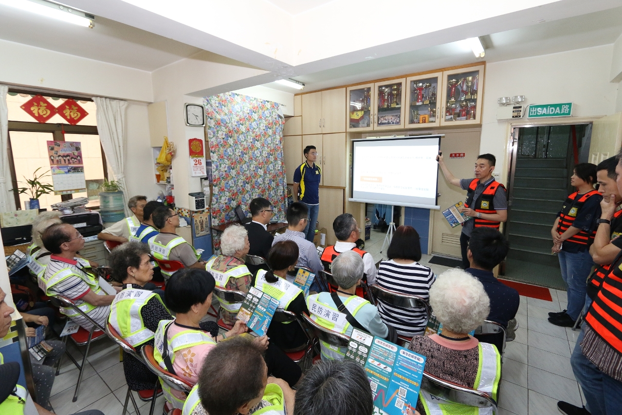 Durante a sessão de esclarecimento, o representante da PJ apresentou detalhadamente o conteúdo do plano de evacuação, as rotas de evacuação, a classificação do nível de Storm Surge, o sistema de alerta e aviso e os tipos de aviso sonoro de emergência, focando ainda a importância do cumprimento e da coordenação dos cidadãos com as instruções policiais para procederem a evacuação de forma rápida, segura e ordenada. Os cidadãos foram alertados a tomarem sempre medidas preventivas contra desastres e riscos, terem um espírito de ajuda mútua e a colaborarem para enfrentar os eventuais desastres. O representante do IAS indicou as localizações dos centros de abrigo situados na península e nas ilhas de Macau, onde ficam os locais de encontro para as pessoas com necessidades especiais, e quais os locais de permanência para evacuação de emergência, mostrando ainda as informações sobre os equipamentos, materiais e horários de funcionamento dos centros de abrigo.
