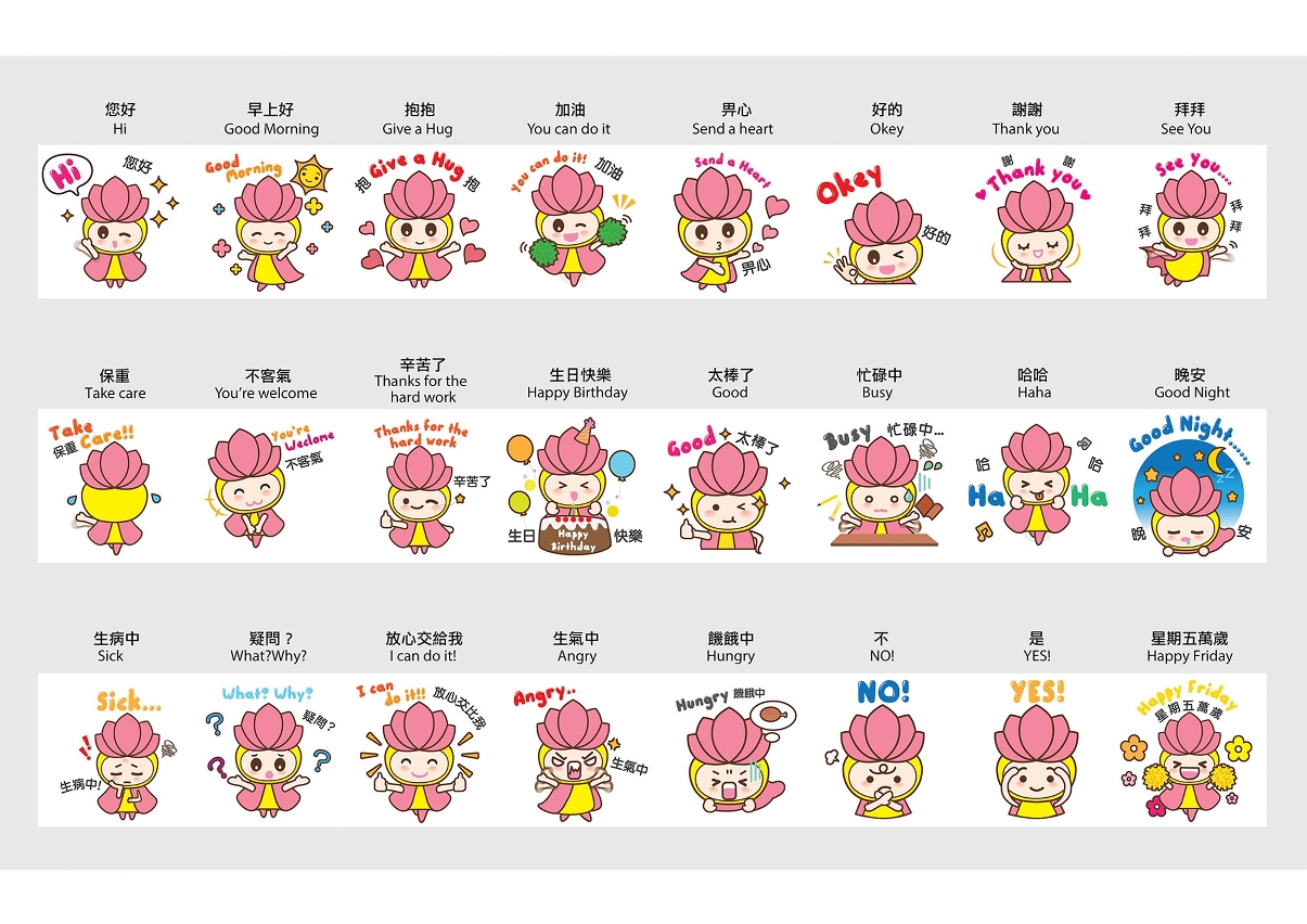 Os participantes do concurso desenharam um conjunto de 24 adesivos estáticos baseados na personagem principal “Shiny”, através do programa de editor de imagem informático, dos quais 16 adesivos devem obedecer aos temas planeados e os restantes 8 são desenvolvidos a liberdade criativa dos participantes. O resultado do concurso é o seguinte: 1.ª classificação: LAO HIO MAN; 2.ª classificação: TANG CHI LEONG; 3.ª classificação: LOI TAT CHEONG; cinco prémios de mérito (sem nenhuma ordem em particular): ZHANG TINGNA, LEI TIAGO, HUANG YILING e WANG CHENXU, FONG KA WENG, e KEONG WENG I.