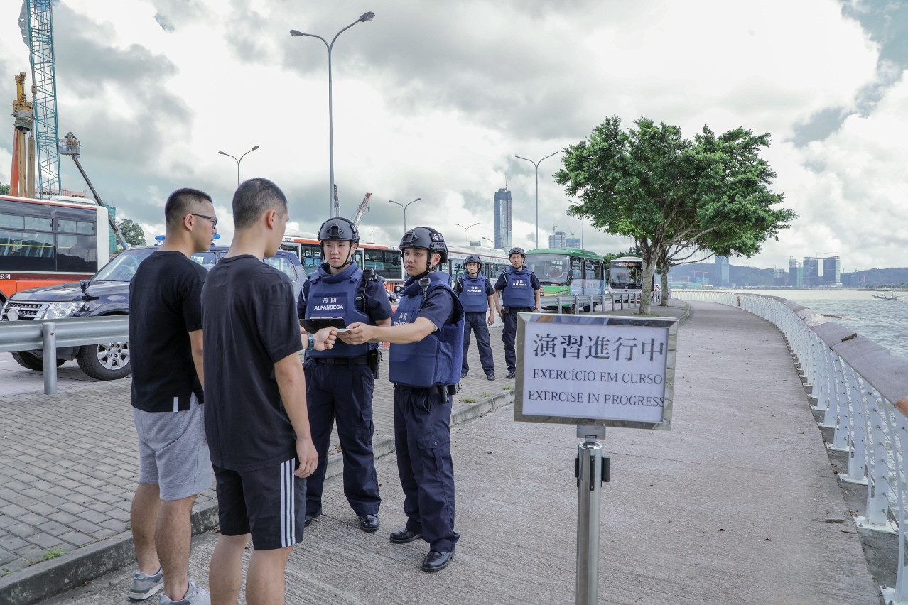 O simulacro teve a duração aproximada de 2 horas, tendo contado com cerca de 310 participantes, provenientes de equipas de vários serviços da área de segurança, nomeadamente, Serviços de Alfândega, a Unidade Especial de Polícia do CPSP, o Grupo de Operações Especiais do CPSP, o Grupo Cinotécnico do CPSP, o Grupo de Negociação para Situações de Crise da PJ, o pessoal de assistência médica do CB, a Equipa Anti-motim do EPC e os técnicos sociais da DSC, etc.. Simultaneamente, em cooperação com o Gabinete de Comunicação Social e os Serviços de Saúde, no que diz respeito à transmissão de informações, agendamento de recursos e coordenação da comunicação, o resultado do simulacro foi satisfatório, tendo conseguido a eficácia esperada do plano de operação.