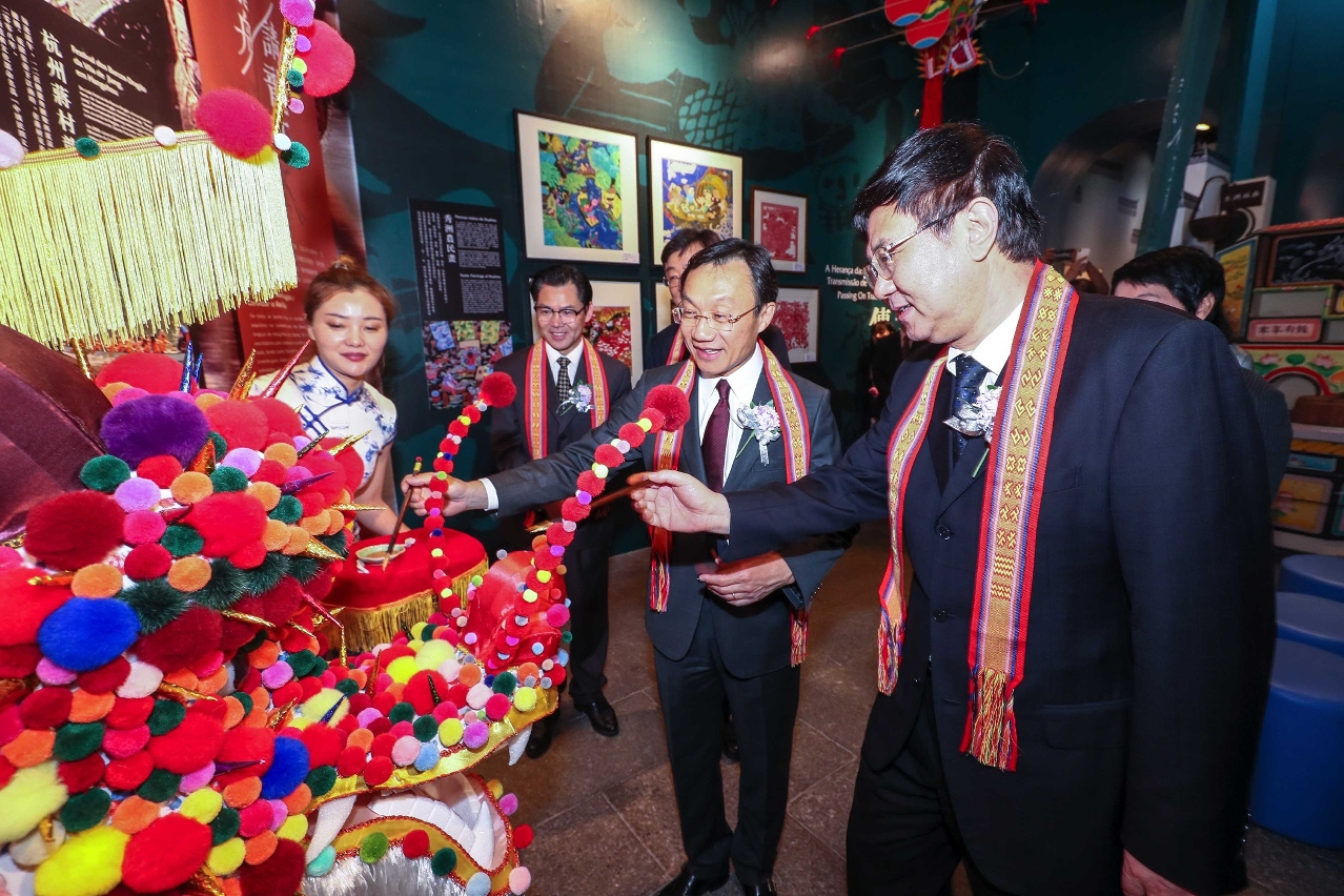 Para celebrar o “Dia do Património Cultural e Natural da China” de 2019, e tendo em vista promover a cooperação e o intercâmbio entre o Interior da China e Macau no domínio da protecção do património cultural intangível e permitir aos residentes de Macau conhecerem melhor o conteúdo cultural e a riqueza do património cultural intangível da China, foi hoje inaugurada (dia 11 de Junho), pelas 18:00 horas, na Galeria de Exposições Temporárias do IAM, o evento “Génese e Espírito - Mostra de Património Cultural Intangível de Zhejiang”, organizado pelo Ministério da Cultura e Turismo da República Popular da China e pela Secretaria para os Assuntos Sociais e Cultura do Governo da Região Administrativa Especial de Macau e co-organizada pelo Instituto Cultural do Governo da Região Administrativa Especial de Macau e pelo Departamento de Cultura e Turismo da Província de Zhejiang, com o apoio do Centro de Protecção do Património Cultural Intangível da Província de Zhejiang.