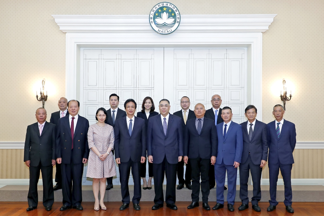 O Chefe do Executivo, Chui Sai On, teve, esta manhã (24 de Junho), na Sede do Governo, um encontro com o presidente da Associação Geral dos Conterrâneos de Fukien de Macau, Hoi Kin Hong, e o presidente executivo, Chan Meng Kam, no qual foram abordados temas relacionados com o impulso ao desenvolvimento de Macau e a formação de forças patrióticas e de amor Macau.