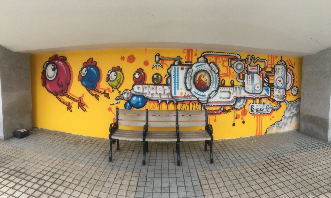 Esta exposição de grafitti dedicada ao tema “Alegria para Todos” apresenta duas personagens – a colorida galinha e o Zai Feliz, criados, respectivamente, por CEET e MCZ. Os dois artistas procuram apresentar uma combinação de elementos diferentes, tais como um sorriso inocente, um duende de energia positiva e um guardião da felicidade, através da sua linguagem comum – o grafitti. Além disso, os artistas cooperaram com a Macau Association for Community Care Children, convidando quatro famílias que apreciam as artes para participar no processo criativo, proporcionando-lhes uma oportunidade para aprenderem as técnicas do graffiti.
