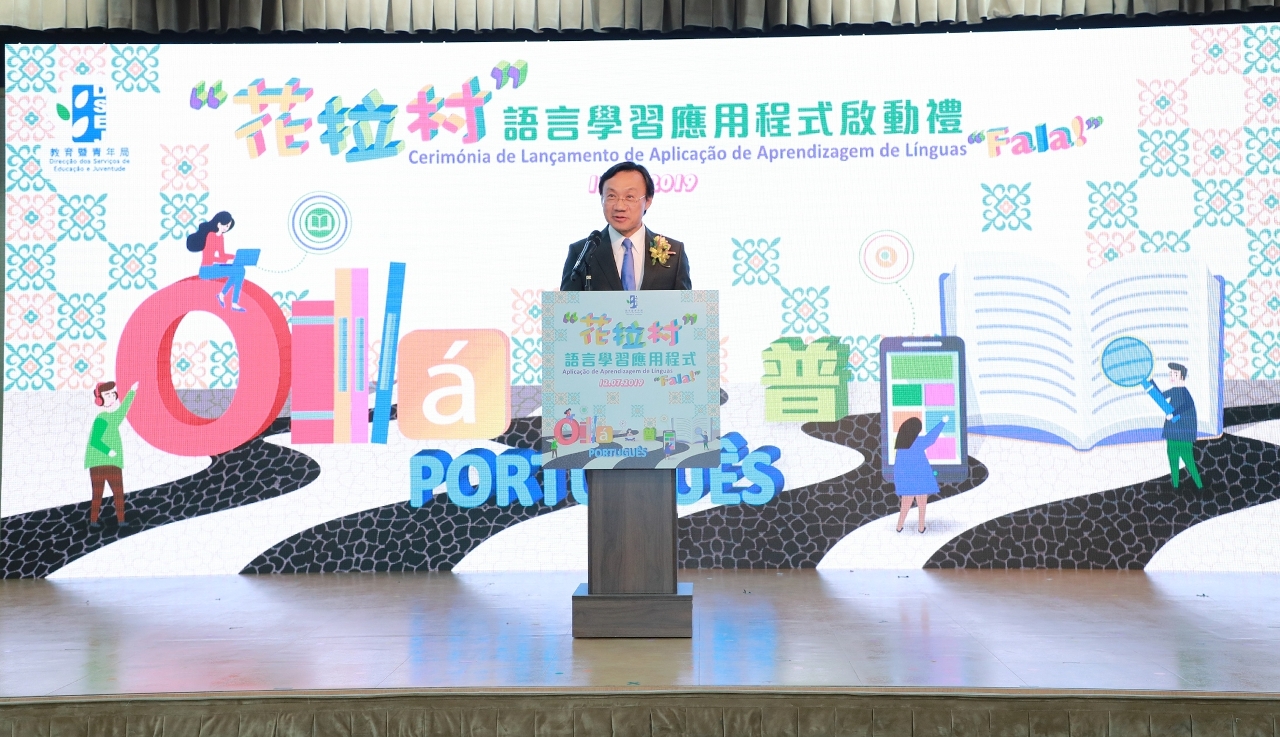 A fim de disponibilizar mais canais de aprendizagem, convenientes aos cidadãos, e de enriquecer os recursos de aprendizagem, a Direcção dos Serviços de Educação e Juventude (DSEJ) e a Universidade de Macau (UMAC) cooperaram na investigação e desenvolvimento da aplicação para aprendizagem de línguas “Fala!”, tendo sido realizada uma cerimónia de lançamento na Escola Oficial Zheng Guanying, a 12 de Julho. A referida cerimónia contou com a presença dos seguintes convidados: Secretário para os Assuntos Sociais e Cultura, Alexis Tam Chon Weng, Director da DSEJ, Lou Pak Sang, Vice-Reitor da Universidade de Macau, Professor Rui Martins, entre outros.